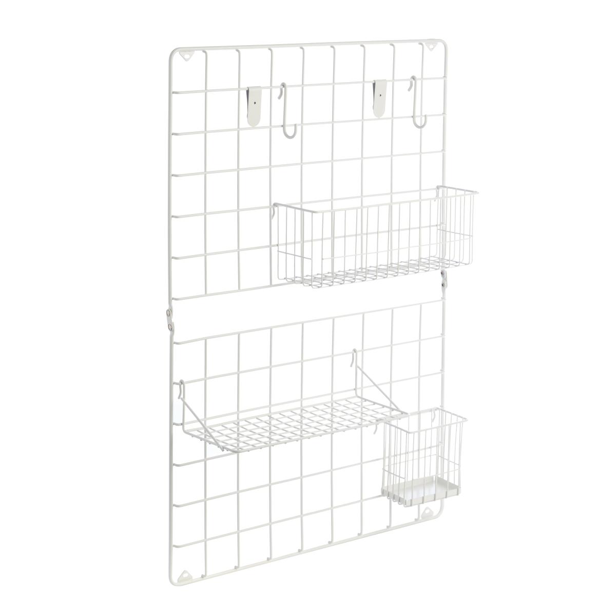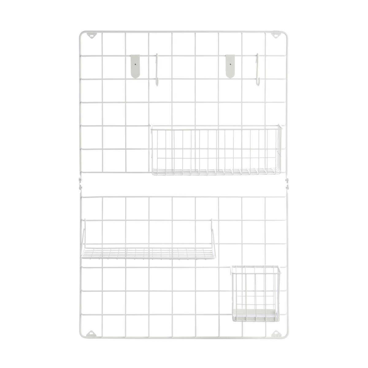 This Metal Peg Board is the perfect solution for empty walls, place it anywhere in the house and showcase your travel photos, postcards, books, stationery, and more. This peg board comes with accessories including shelving and baskets that can be rearranged for a customised look.