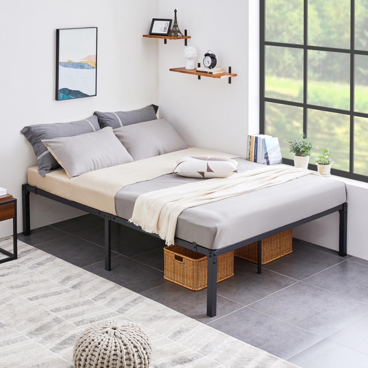 This bed frame features a metal slatted structure, providing you optimum stability for any type of mattress without a clumpy box spring. The durability of the metal bed frame also prevents mattress sagging, which benefits the long-lasting use of your mattress. The 37.5 cm ground clearance creates valuable under-bed space for storing your quilts, pillows, out-of-season clothing or other items, versatile for use.