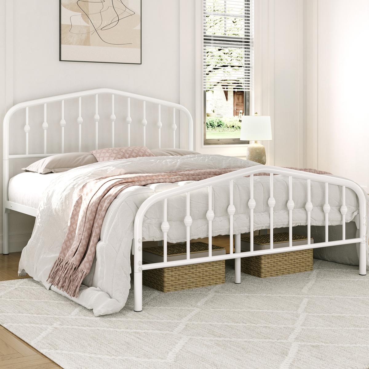 With a nod to antique design, this bed frame embraces curved lines, multiple graceful spindles and sleek metallic finish that seamlessly blends with any house or apartment decor style. Constructed of a solid and durable metal frame, this bed frame features multiple strong support legs that provide optimal stability for any type of latex, memory foam or spring mattress without a clumpy box spring. Details like the powder-coated finish and non-slip foot caps all contribute to your safety and comfort. Clear instructions, useful tools, and numbered parts are provided to assist you in completing the setup quickly and effortlessly within an hour.