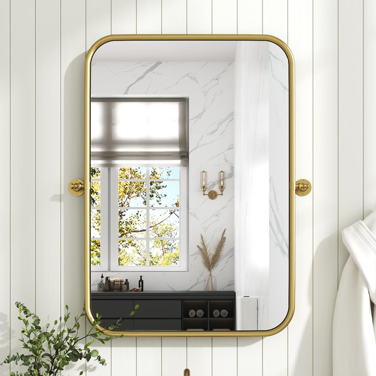 Elevate your home decor with this stunning decorative mirror. Its smooth, gold-finished metal frame, featuring elegant curves, exudes modern charm and sophistication. Crafted with high-quality, copper-free glass, it delivers crystal-clear reflections and ensures durability for long-lasting beauty. The reflective surface brightens any room, creating a warm and inviting atmosphere that complements any space