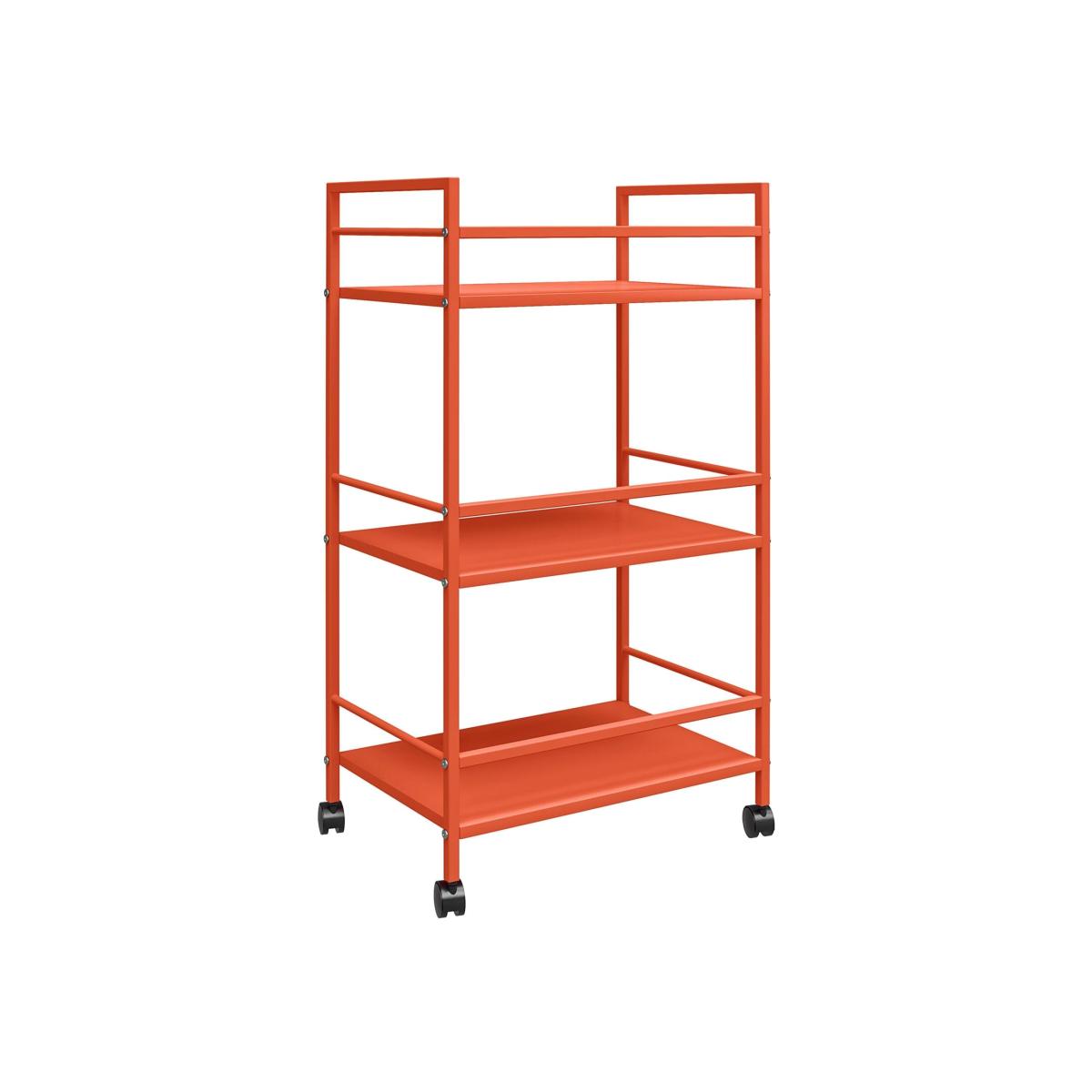 From the living room to the bathroom to the kitchen and beyond, the Novogratz Cache Metal Rolling Cart is a great addition to your home. Featuring a minimalistic style, the Cart has 3 large shelves. Each shelf has 3 wrap-around bars and can hold up to 20 lbs.