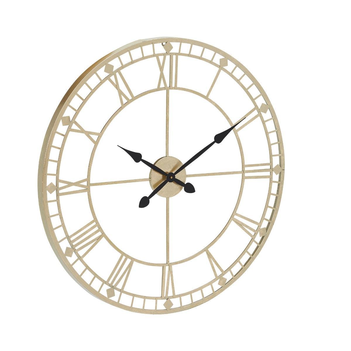 Demonstrating modern-vintage style at its finest, the Metal Round Wall Clock has a traditional roman numeral design in a gorgeous antique gold finish. An ideal and practical decorative feature for large walls, this stunning clock has a cut out aesthetic that gives it a delicate, elegant edge, perfect for a subtle yet eye-catching wall piece.