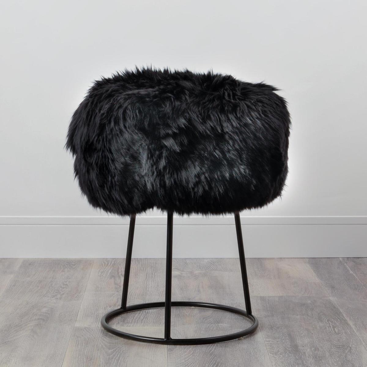 I love how this black furry stool combines a slim metal frame with cosy faux sheepskin - it instantly adds texture without dominating the room. It suits modern Scandi schemes as well as industrial lofts or minimalist spaces, and the dark hue anchors lighter palettes beautifully. Styling-wise, use it as an occasional seat in your living room or a bedside perch in a compact bedroom. Pop it on a natural-fibre rug to accentuate the contrast, or place a neat stack of art books and a small vase on top when not in use. Its lightweight design means you can easily move it to fill awkward corners or provide extra seating when guests arrive.