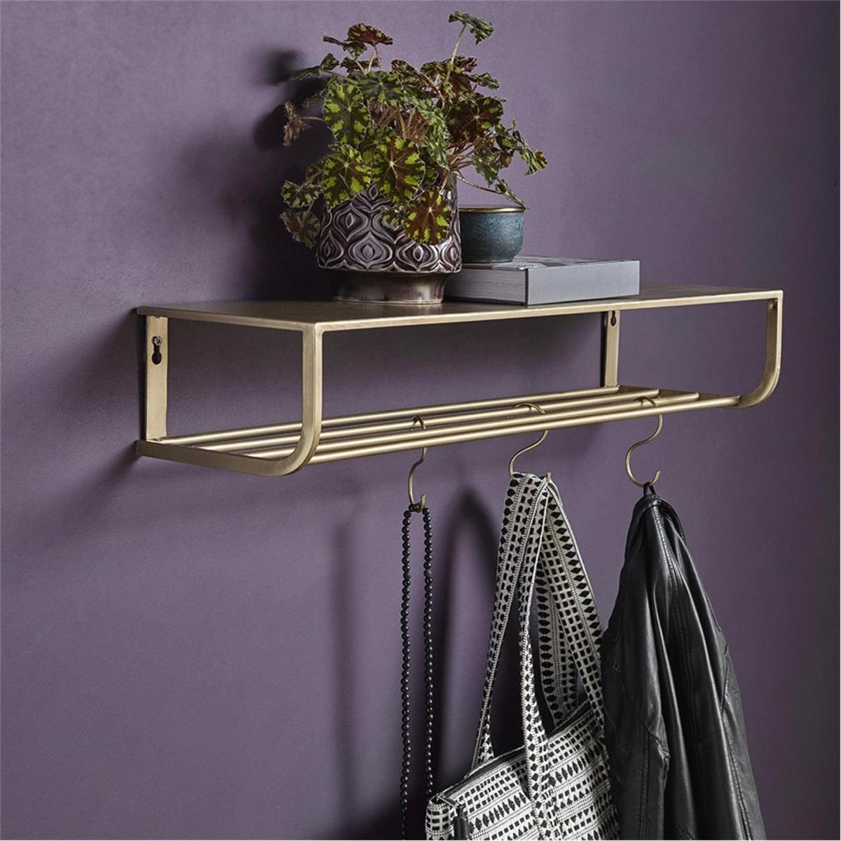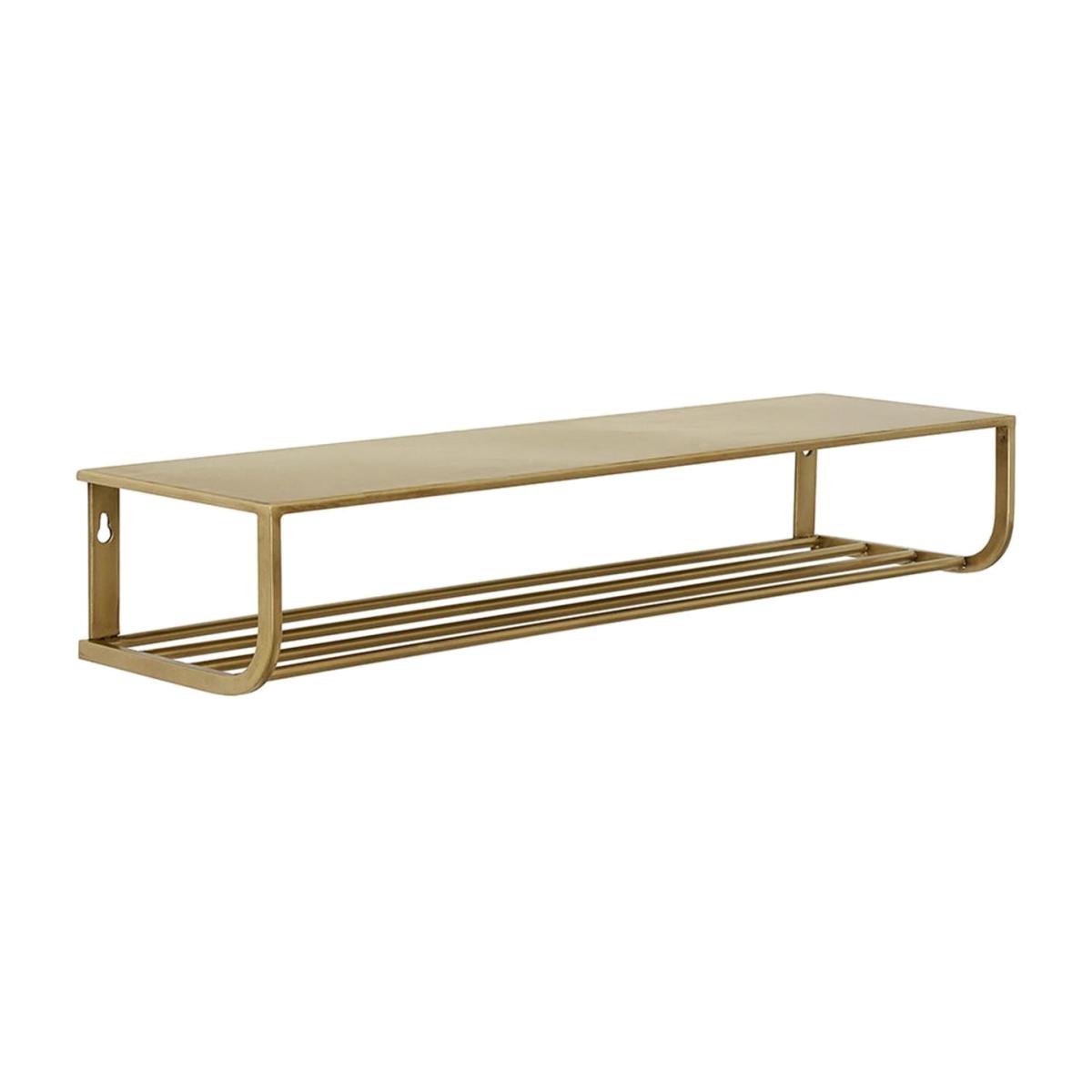 Add surface area without taking up precious floor space with Nordal’s range of industrial styled shelving. This metal shelf is available in a black or gold coloured finish and features a flat main shelf with bars underneath for additional storage.