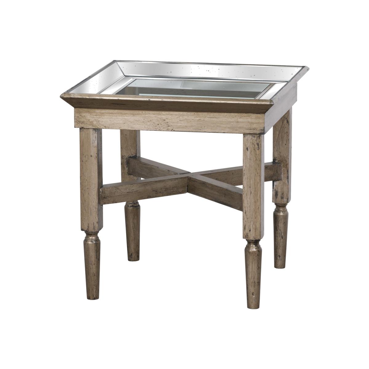 This stunning handcrafted side table features a distressed mirrored edging and see through glass table top for a luxurious feel. Place next to your sofa with your favourite lamp for the perfect finishing touch to your living room.