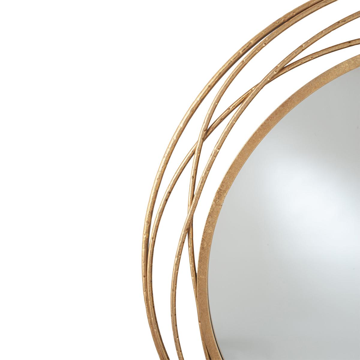 I really like this round wall mirror with its metal swirl design and antique gold finish - it offers a sophisticated yet contemporary look. It works particularly well in modern and eclectic interiors, adding a touch of elegance and visual interest. Practical styling tips include placing it above a console or sideboard to create a focal point, or grouping it with other metallic accents for a cohesive look. Its reflective surface will help to open up smaller spaces, making rooms feel larger and more inviting. Keep in mind that the gold effect pairs beautifully with warm tones or neutral palettes, and the layered metal design adds depth even in minimal settings.