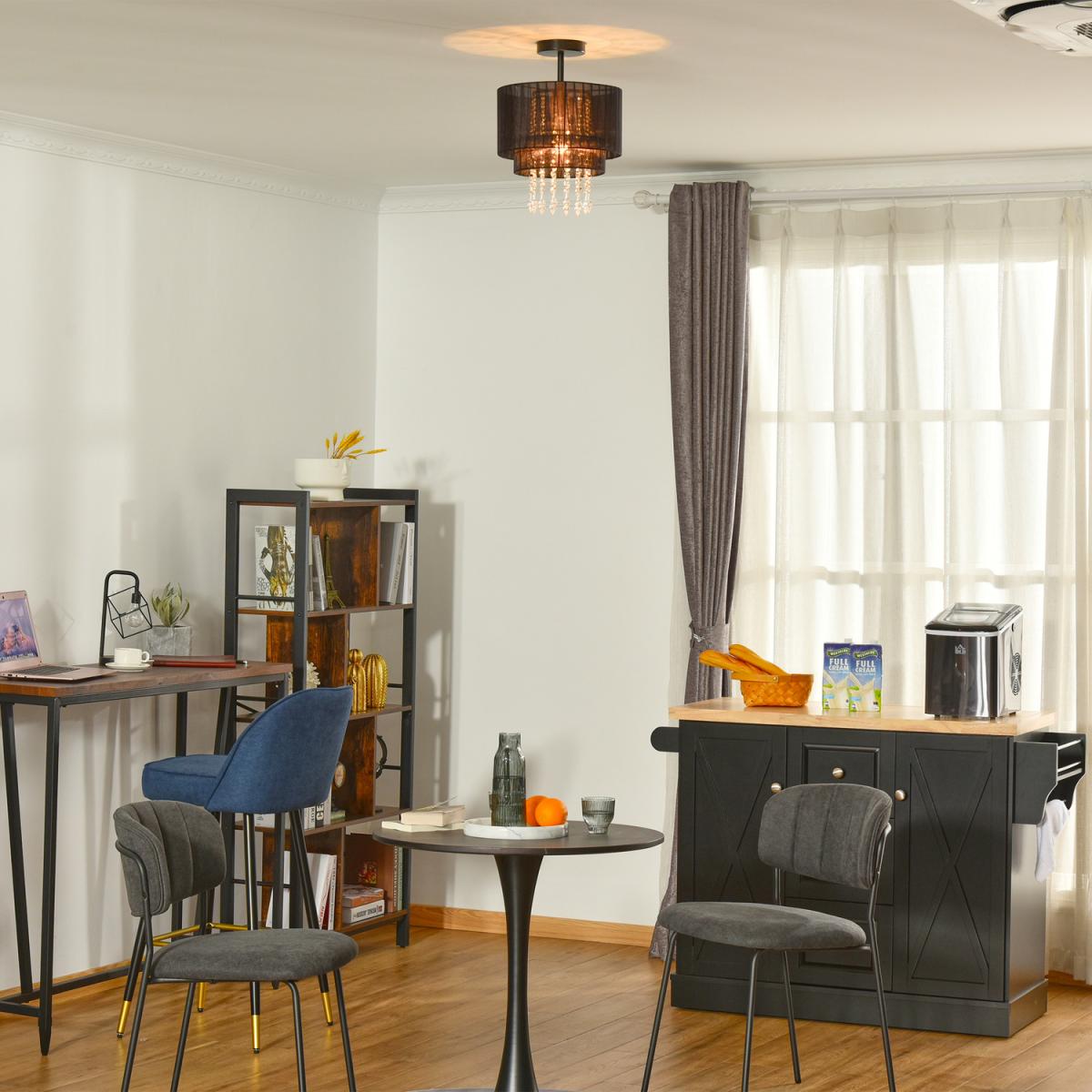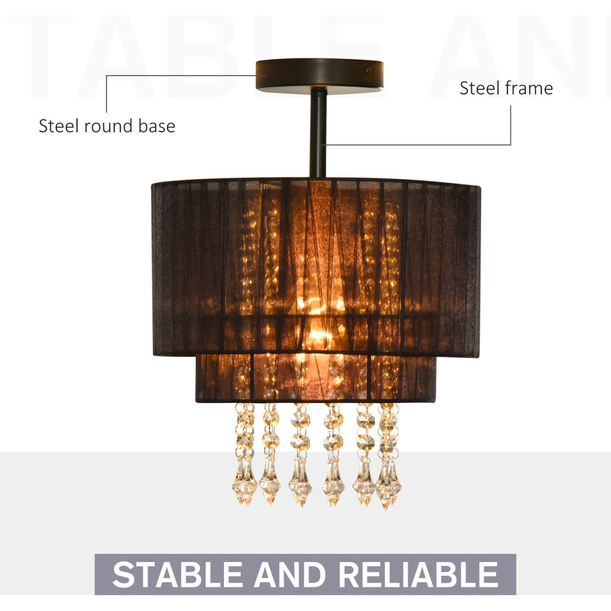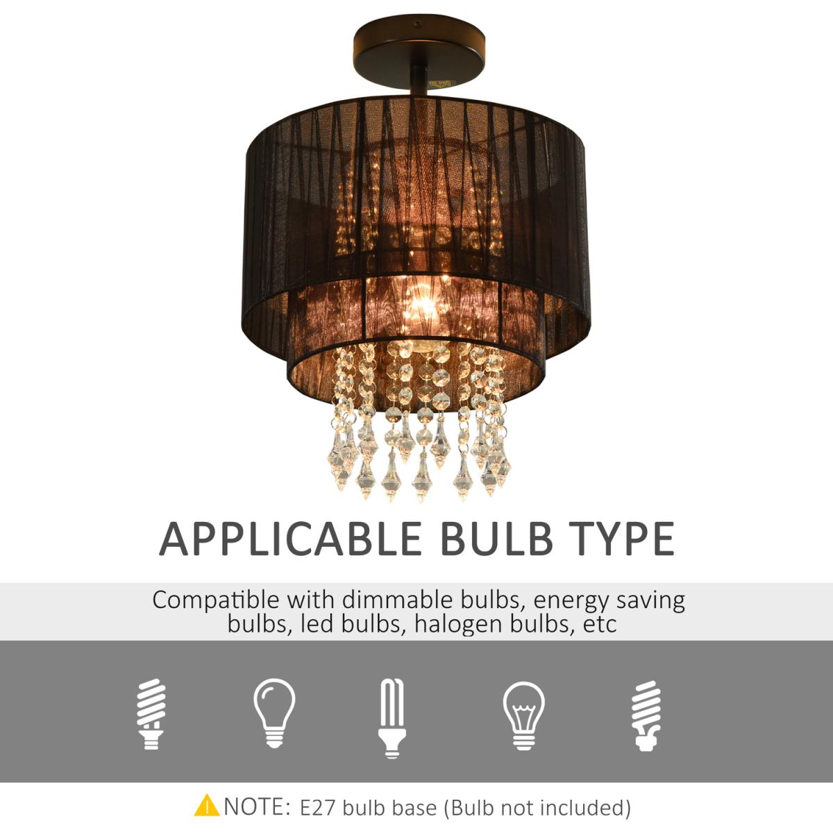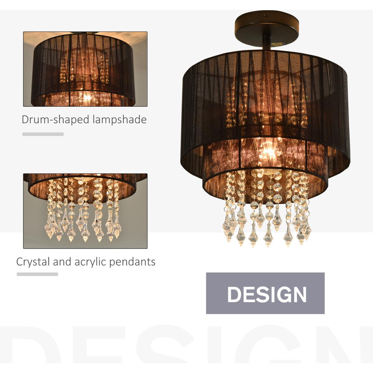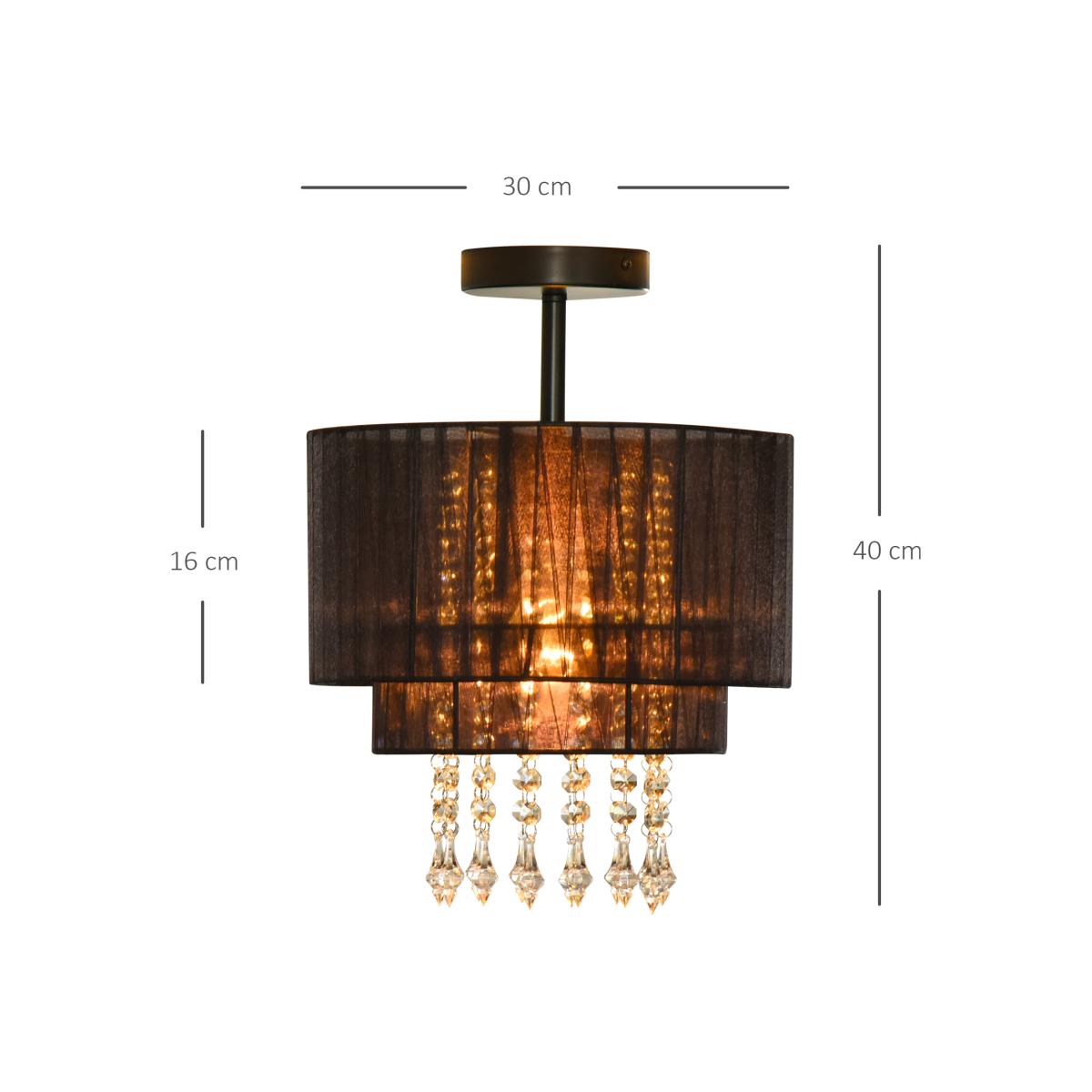Bring a touch of glitz and glamour into anywhere with this vintage ceiling light from HOMCOM. It features a scattering of crystallite beads that catch the light for lots of sparkle. They are encaged with two drum shades, allowing the light to gently diffuse through, also creating a subtly vintage look for a point of difference throughout the home. The polished metal top is tough to ensure safe suspension. A great way to bring some sparkle into your everyday surroundings, wherever you choose to hang.