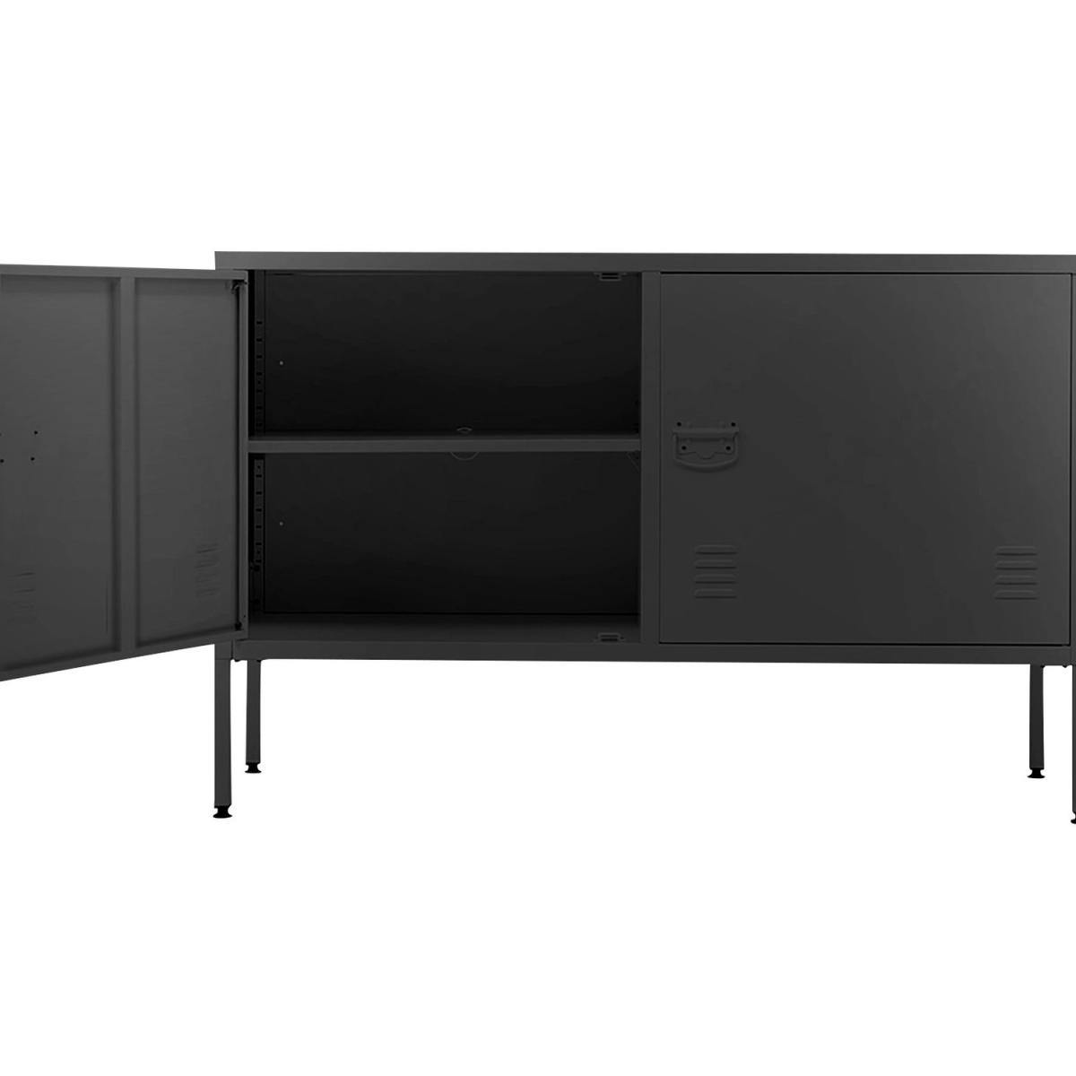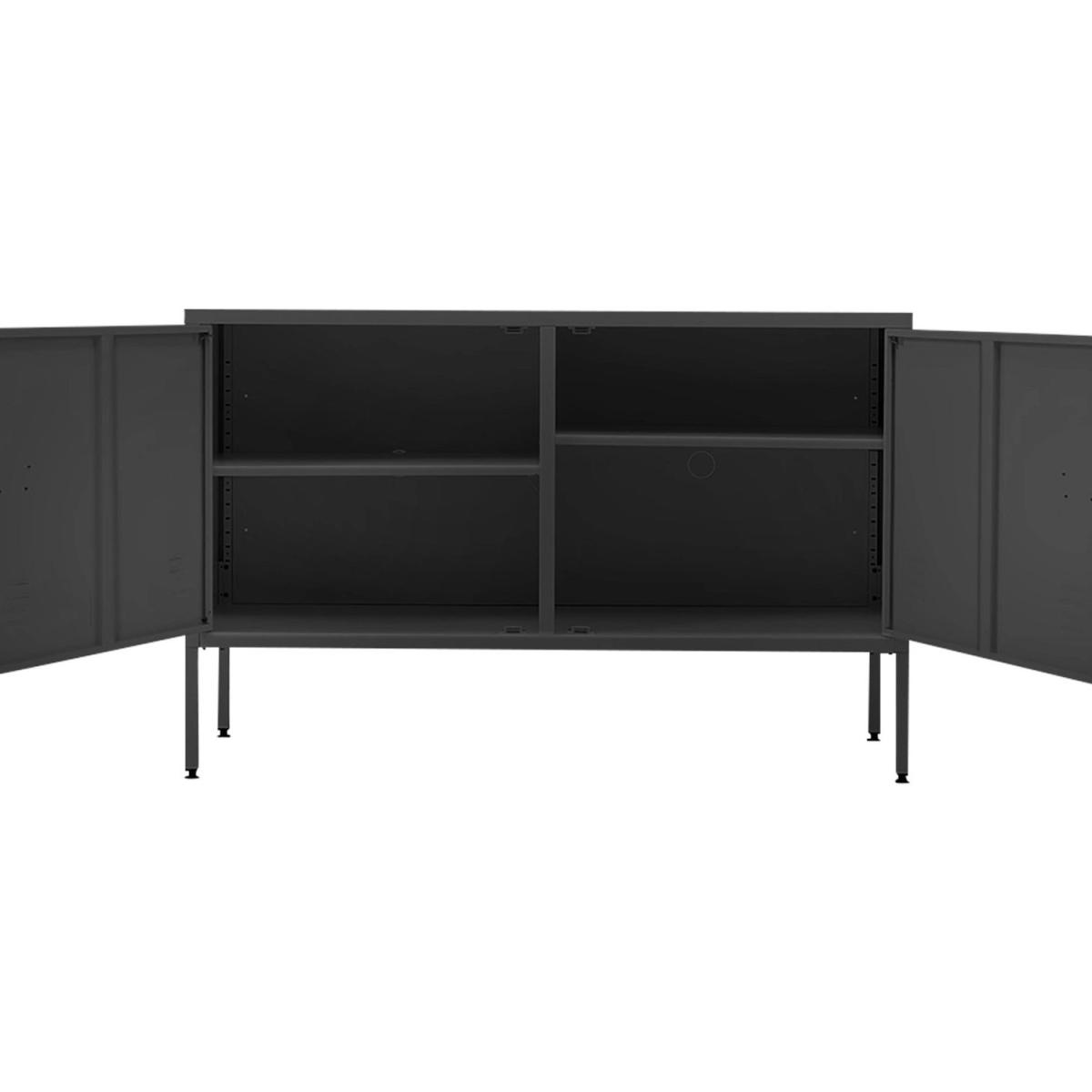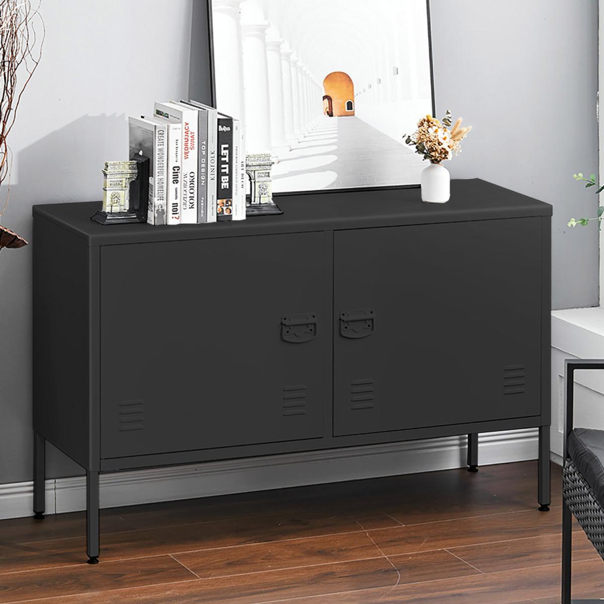This wide metal storage cabinet is perfect for adding valuable storage anywhere in home office or living room. It has interior adjustable shelves and ample storage space to keep your room clutter-free and well organized. Metal frame stand offers extra stability, works great as a sideboard, TV stand, hallway cabinet etc.
