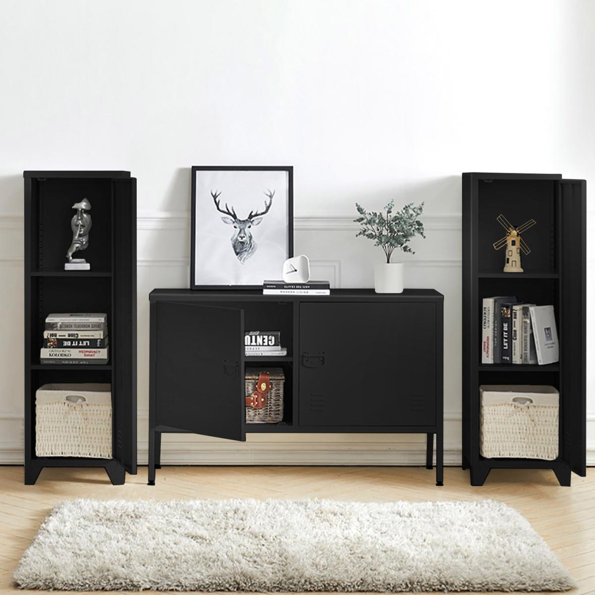 Metal Wide Storage Cabinet 2 Doors 20cm Leg - Black