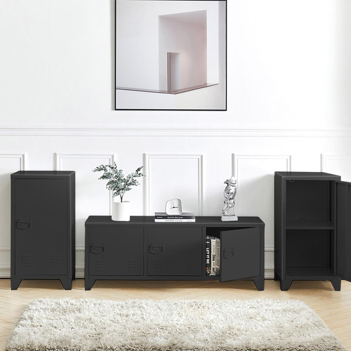 This wide metal storage cabinet is perfect for adding valuable storage anywhere in home office or living room. It has interior adjustable shelves and ample storage space to keep your room clutter-free and well organized. Metal frame stand offers extra stability, works great as a sideboard, TV stand, hallway cabinet etc.