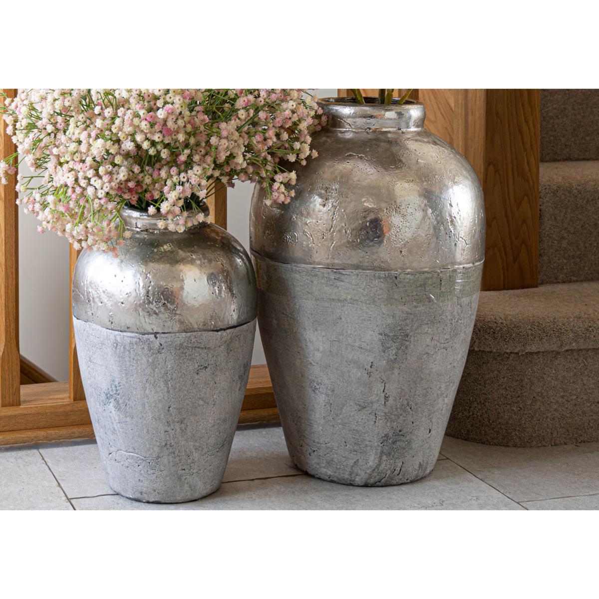 Add the finishing touch to your home with this gorgeous vase. Why you'll love it. This vase features an on-trend two-tone effect. Contrasts aged stone with dimpled metallic effect. Designed to work with many different interiors. Love this vase? Shop our other home accessories. What you need to know. Dust with a soft, clean, lint-free cloth. Dimensions. Width: 35 cm (14 inches). Depth: 35 cm (14 inches). Height: 56 cm (23 inches).