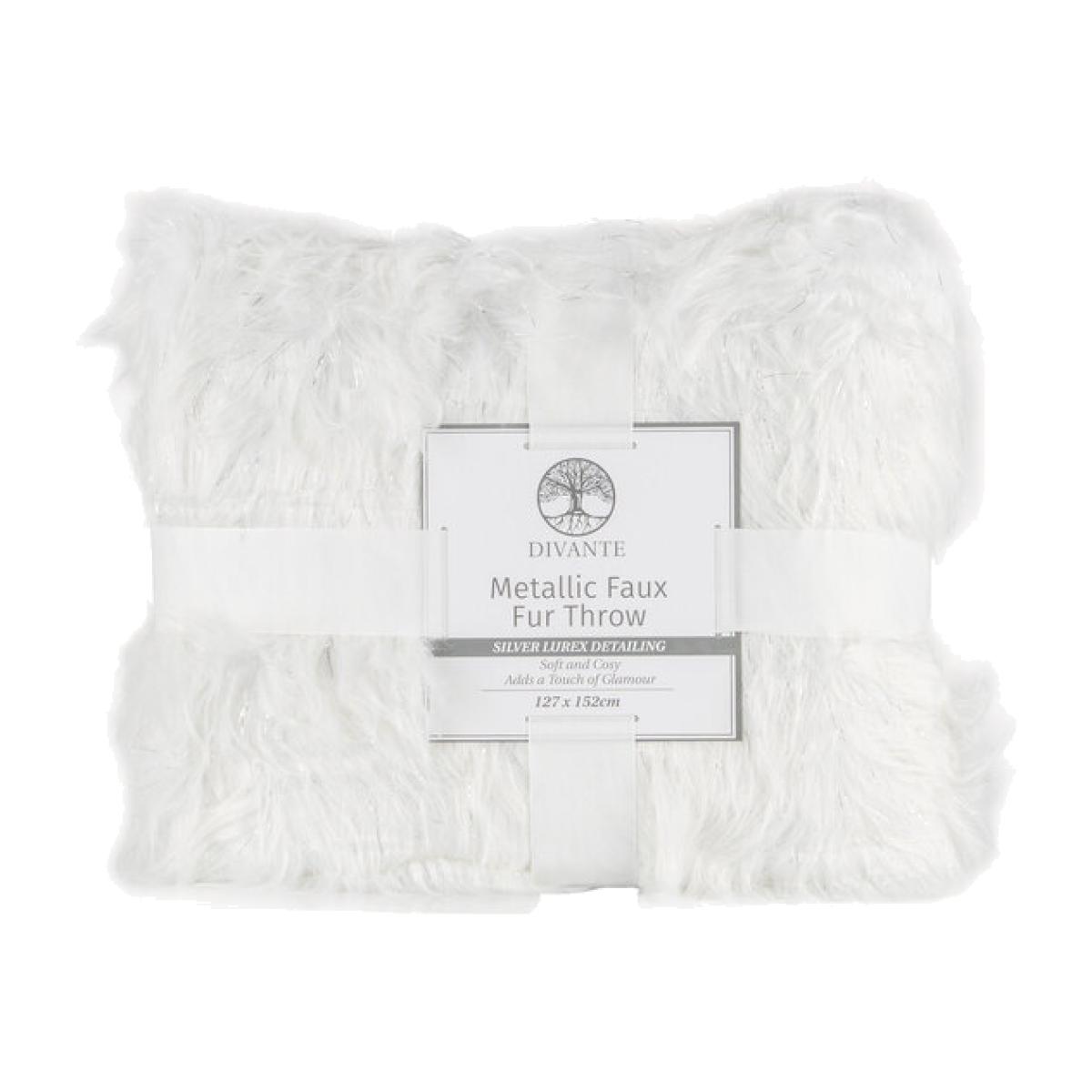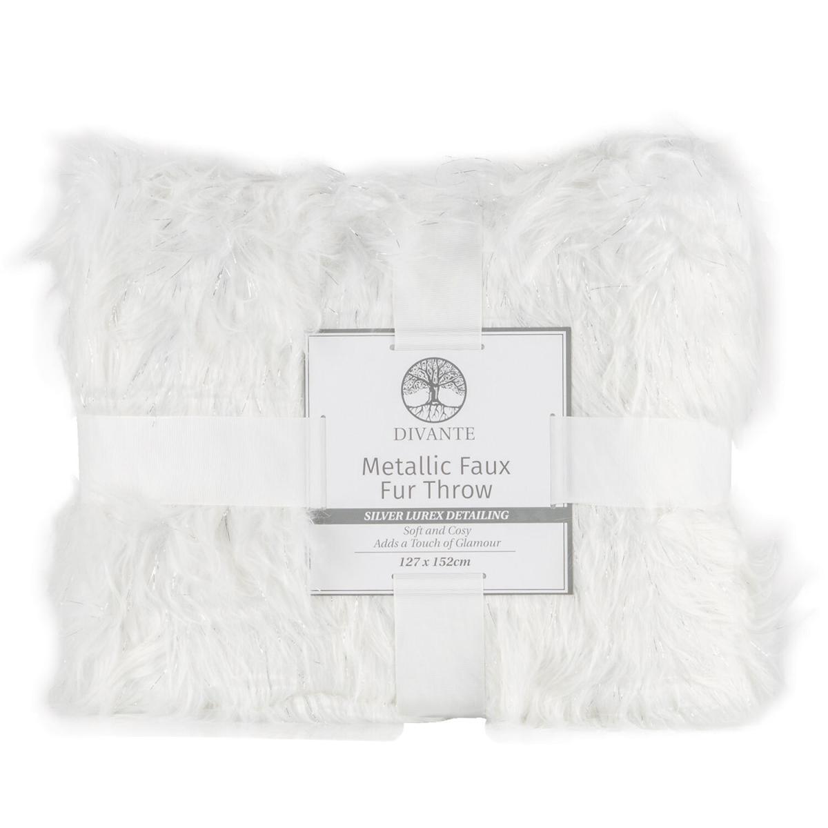 Ultra-soft and snuggly, the Metallic Faux Fur Throw is the perfect accessory for the cooler months. Its shaggy texture and pure white colour pair perfectly with a variety of themes from modern and contemporary to Scandi-inspired, while its metallic silver lurex detail creates an appealing lustre.
