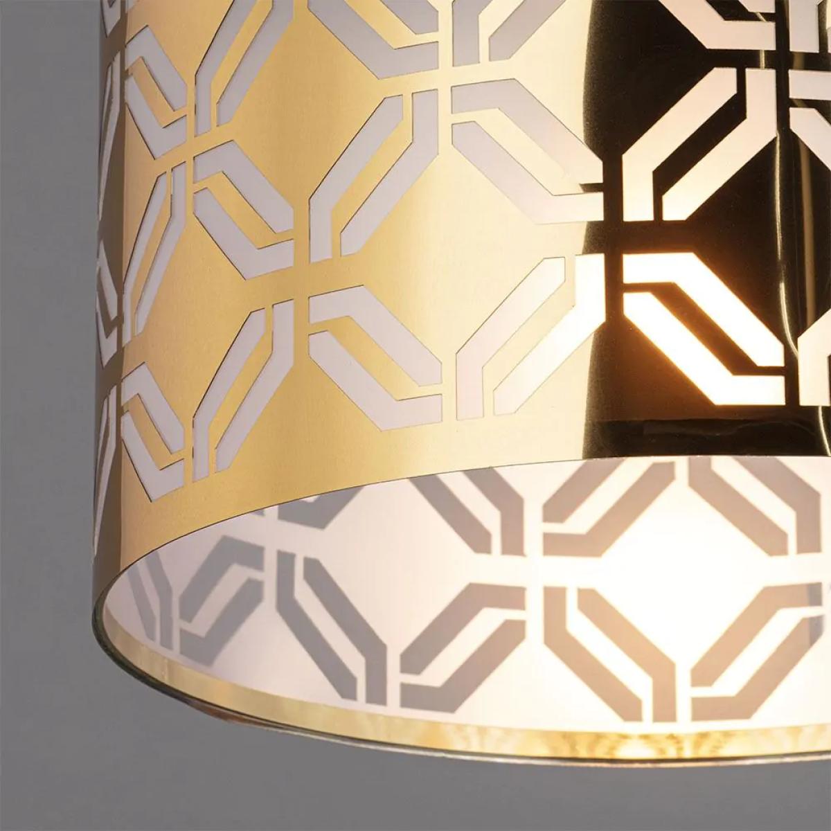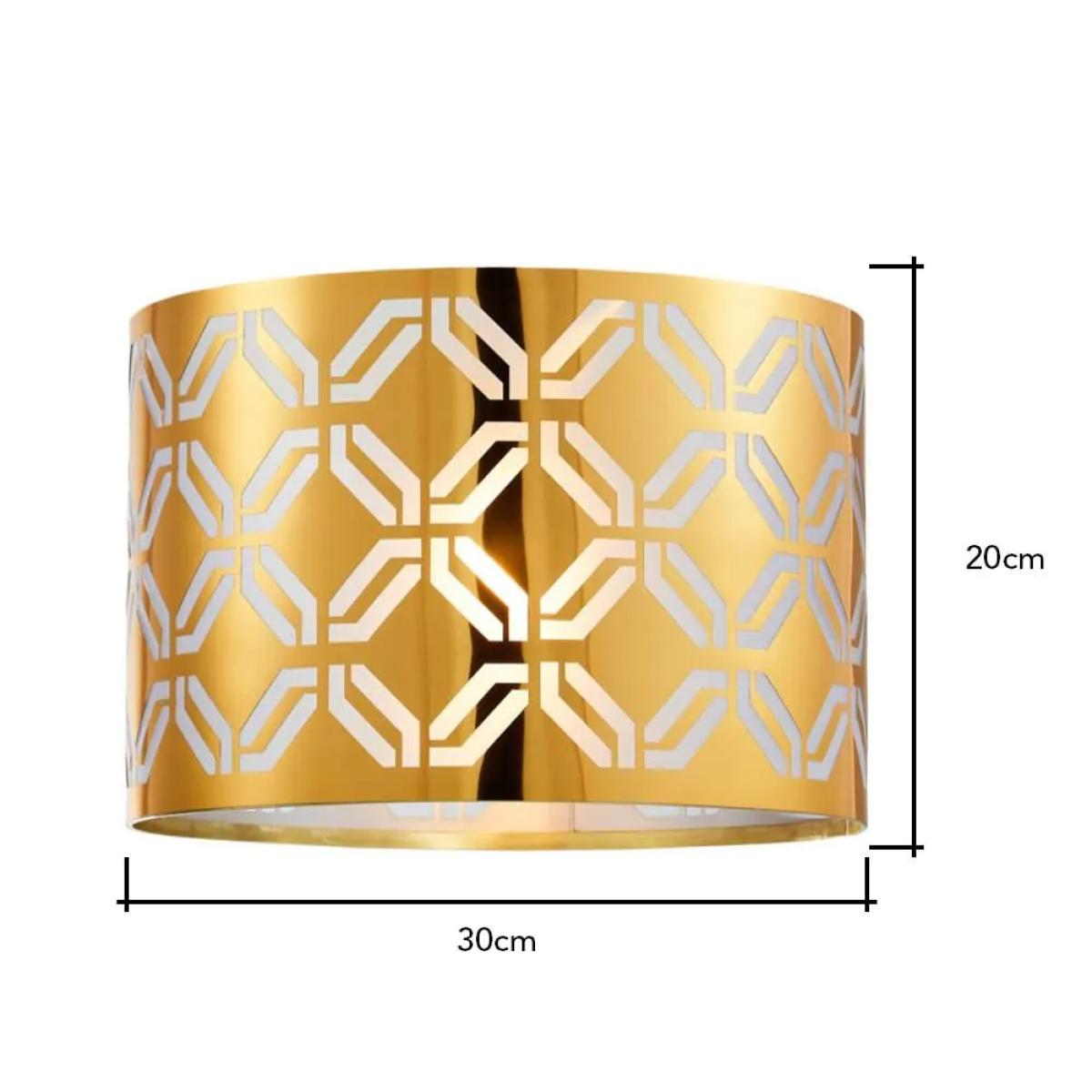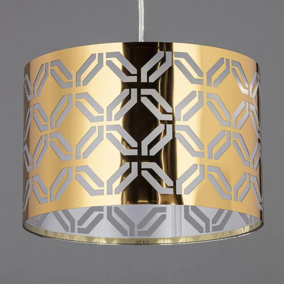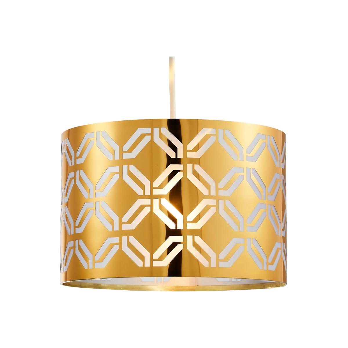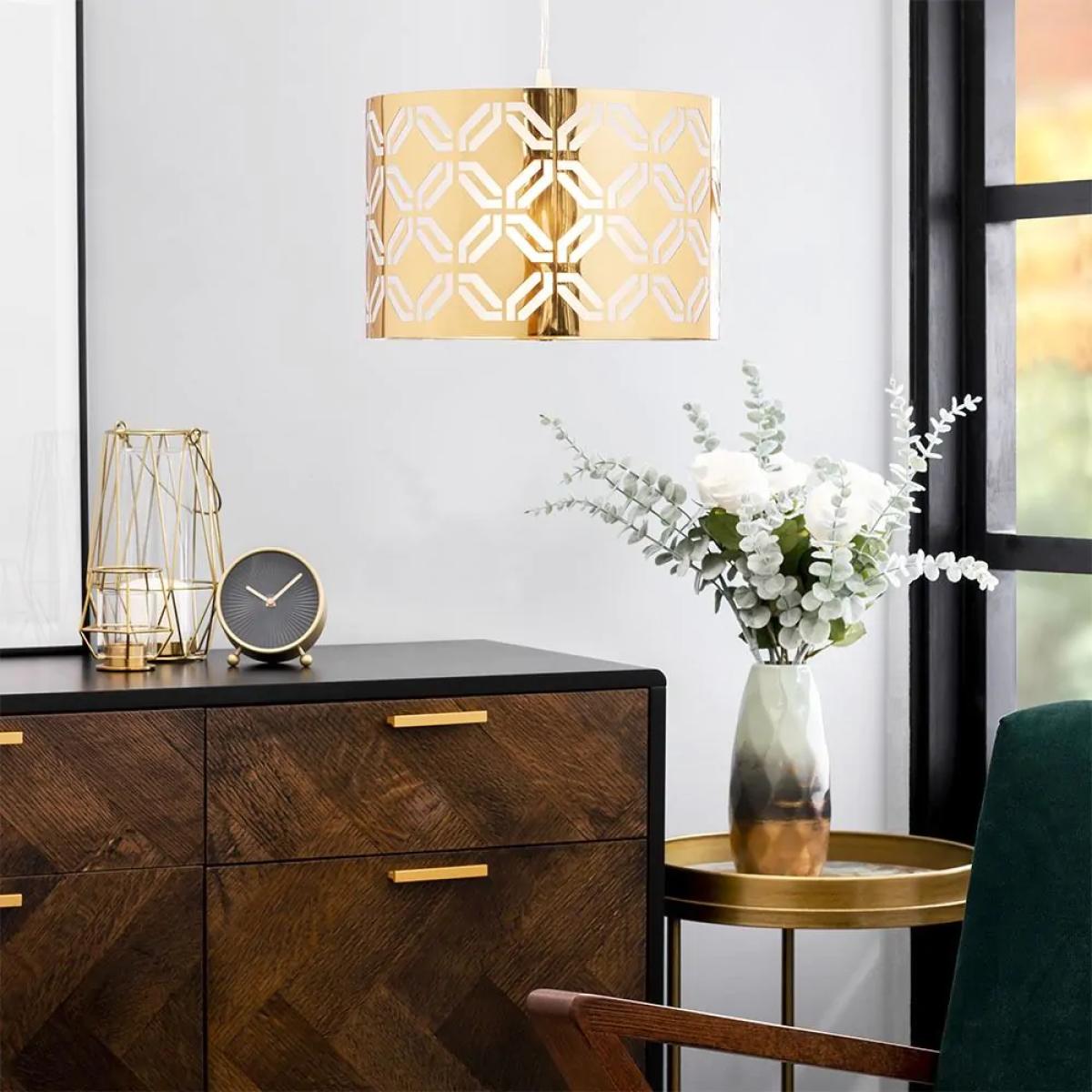 A statement lighting accessory, the new Metallic Lasered shade features a glamorous, brass finish that provides a beautiful, shimmering pop of colour to any space. The metallic base is adorned with an arrangement of cut detailing, directing the light within into a stunning display throughout your room, complimenting the brass tones and creating an accented centrepiece for any space.