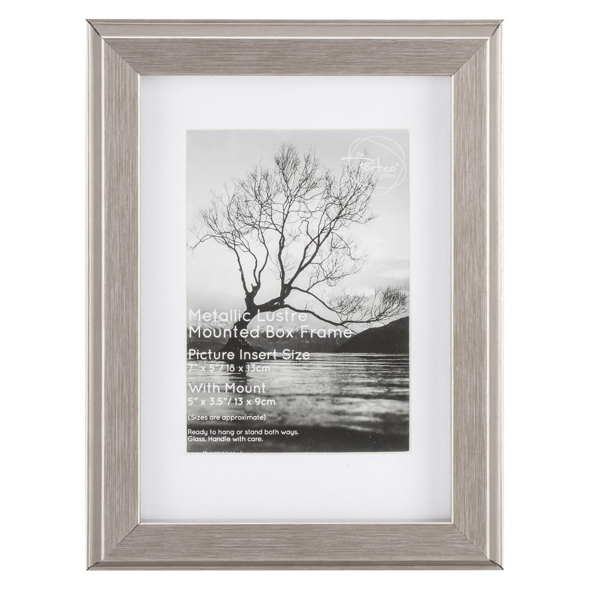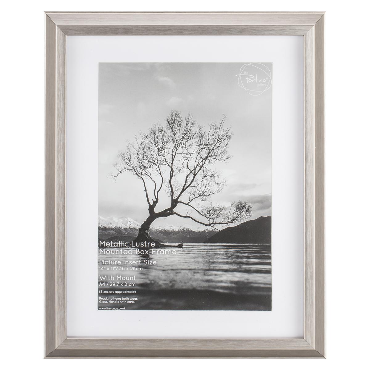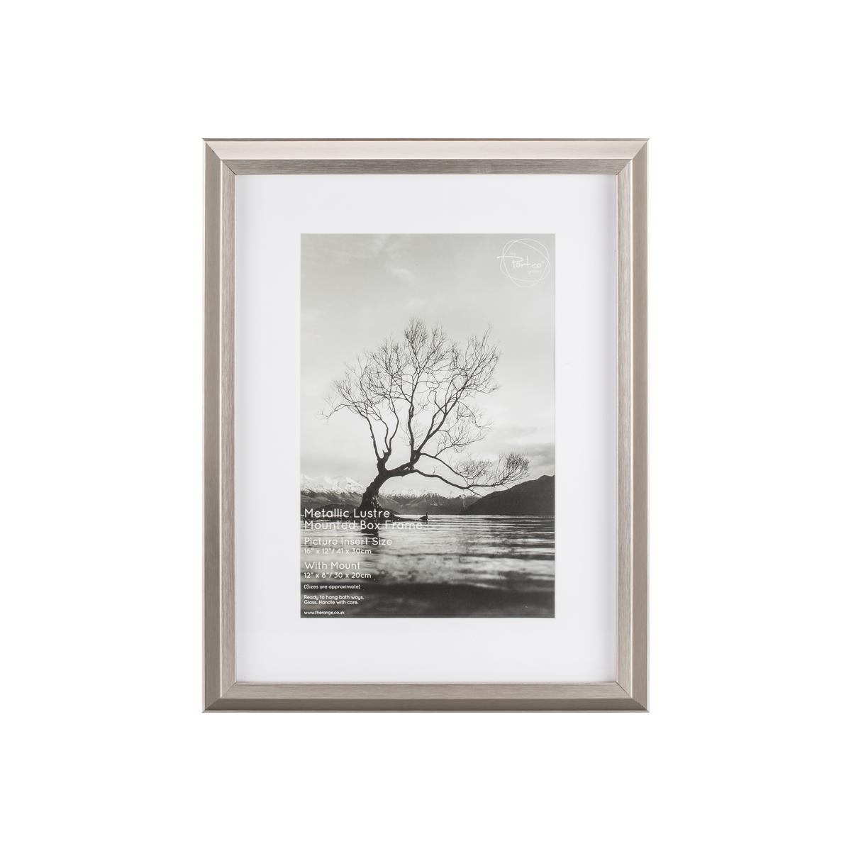 A modern and versatile way to display images or small items, the Metallic Lustre Mounted Box Frame has a rectangular, metal-effect edge and can be hung in either landscape or portrait to best suit your space. Its deep form is great for creating collages, while its silver finish brings a contemporary touch to your wall.