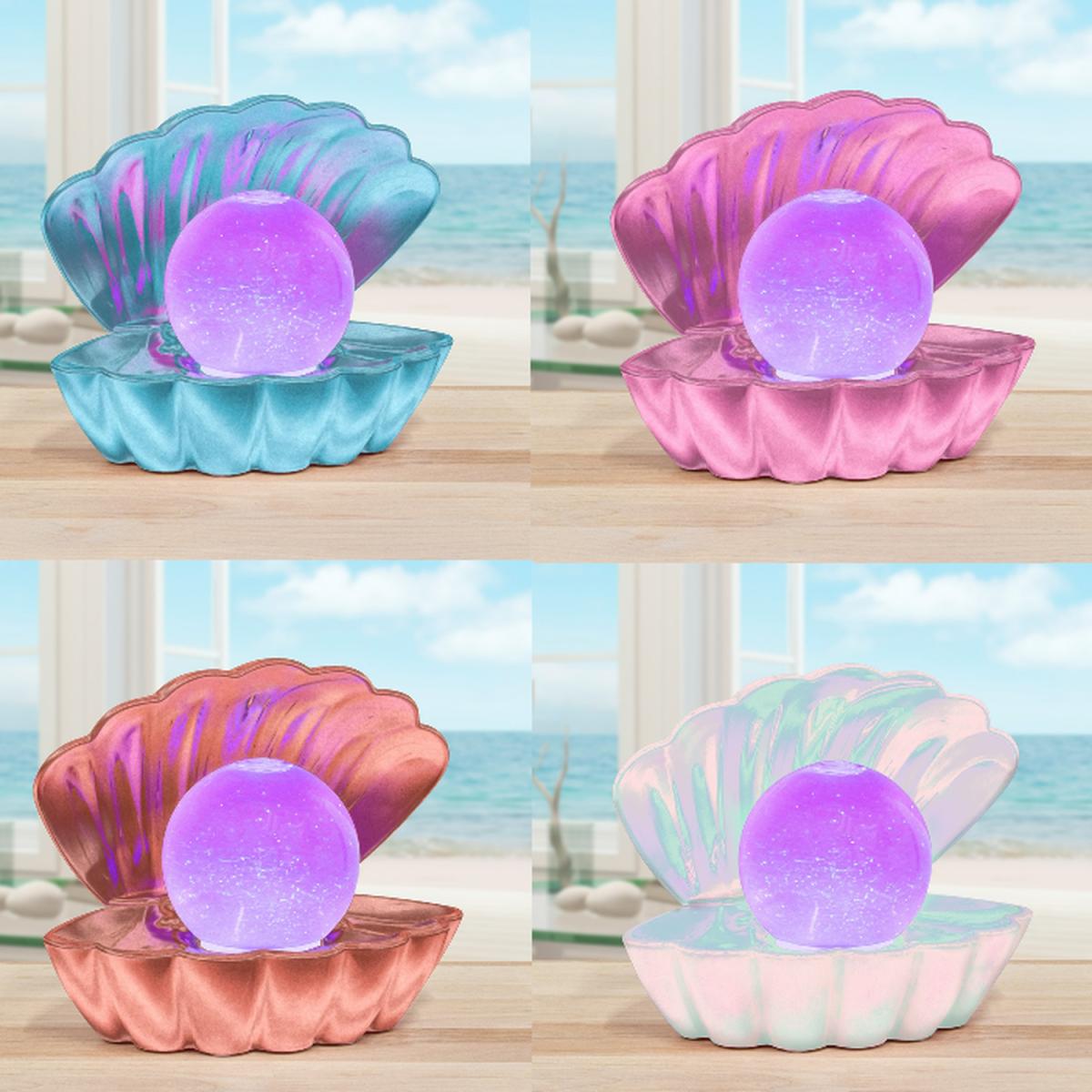 Clam Like LED Lamp With Rotating Glitter Filled Pearl Watch As It Fades Between Colours While Spinning. USB Powered Or Alternatively Can Be Powered With 3 AAA Batteries (not included). It comes with a cable length which is 1 meter. This is a great lamp to have in your home and anywhere in your home! Can be used as decoration or even a night light.