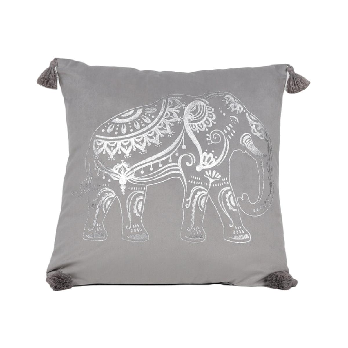 A beautiful bohemian-inspired addition to your interior furnishings, the Metallic Silver Elephant Cushion featured a lustrous foil illustration on soft velvet textile. Finished with a tassel in each corner for even more texture, this gorgeous cushion will bring some world-inspired glamour to your room.