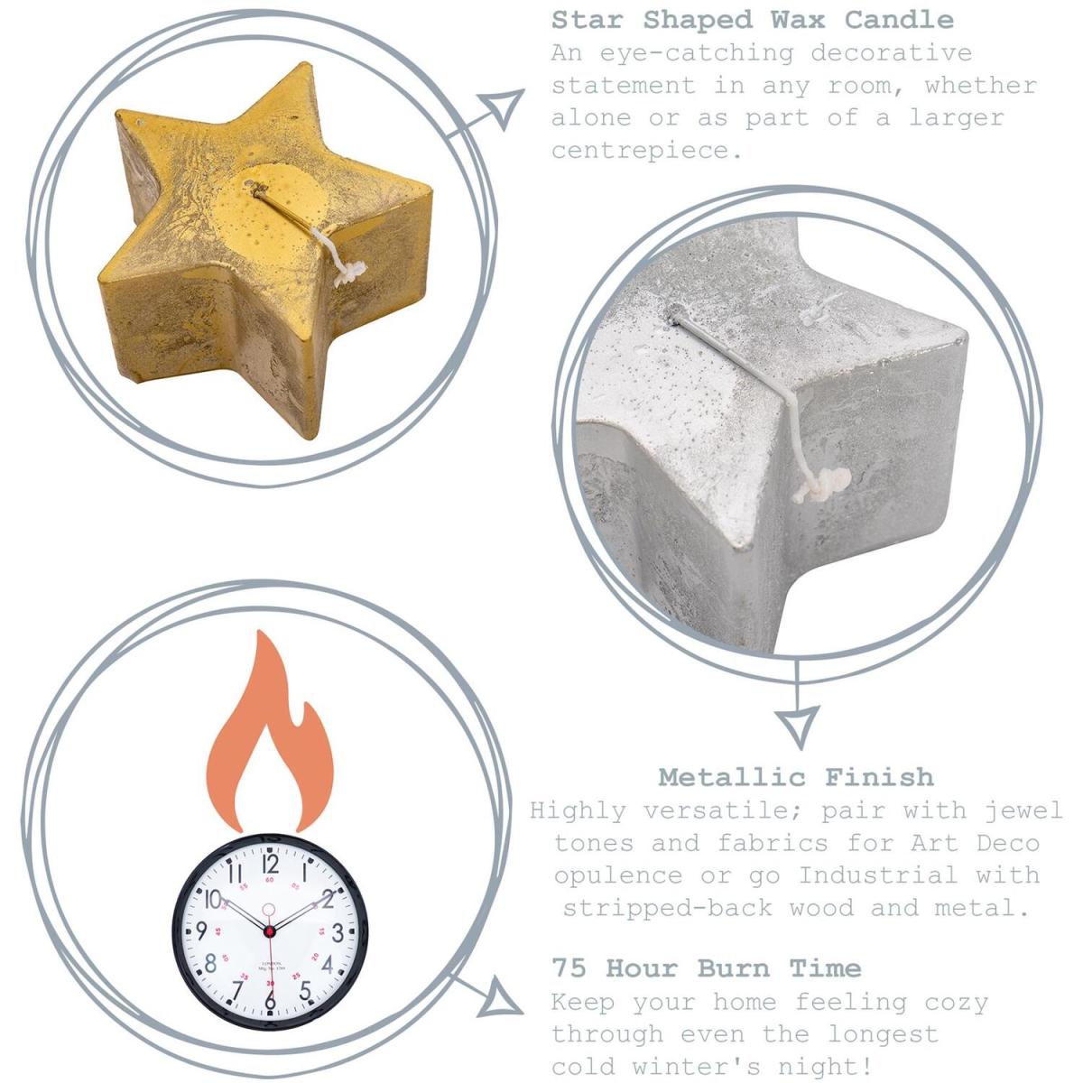Add a dash of luxury to your home decor or seasonal celebration with the Metallic Candle Collection from Nicola Spring. Few things can so quickly make a room feel warm and cosy than the flickering of candlelight. With a maximum burn time of 75 hours, our Star-Shaped Wax Candles will keep that snug feeling strong through even the longest of cold winter's nights. As the name suggests, we've finished each of these candles with a metallic coating that will grace any space with a little extra layer of luxury. Pair with jewel tones for some Art Deco opulence, or combine with stripped-back woods and metals for an on-trend industrial look.