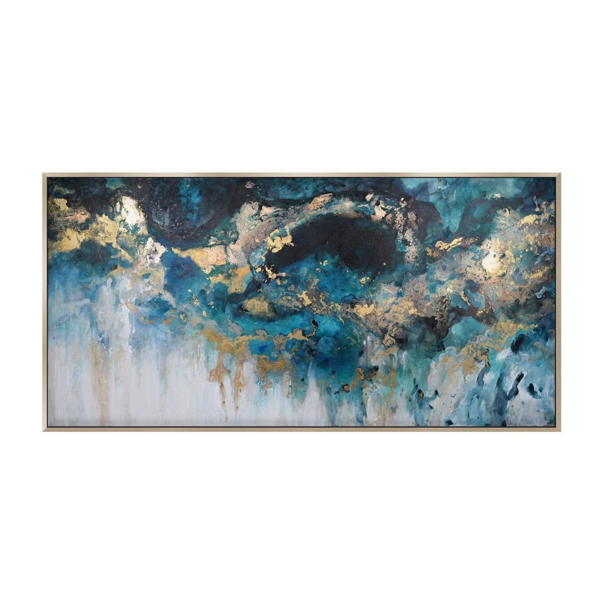 I love this piece for its striking abstract design and the rich, metallic accents that add a contemporary edge. It works particularly well in modern or minimalist interiors, where its bold colours can serve as a focal point. To style it effectively, consider placing it above a neutral sofa or sideboard to let the artwork stand out. Pairing it with metallic accessories or soft lighting can enhance its shimmer and add depth. This artwork is versatile enough to work in living rooms, dining areas, or even commercial spaces where a sophisticated, artistic vibe is desired. Just keep surrounding decor minimal to let the artwork be the star.