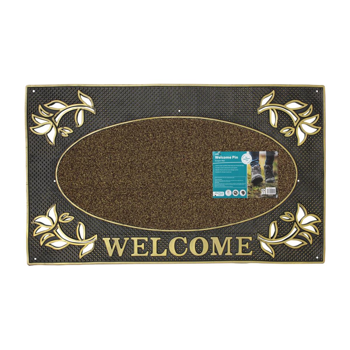 The coir fibres in this mat will help to prevent the transfer of dirt, grass, mud, dust and moisture into your home, lodge or caravan. Practically sized and with a pleasing stencilled surface the mat is easily cleaned with a shake and a stiff-bristled brush.