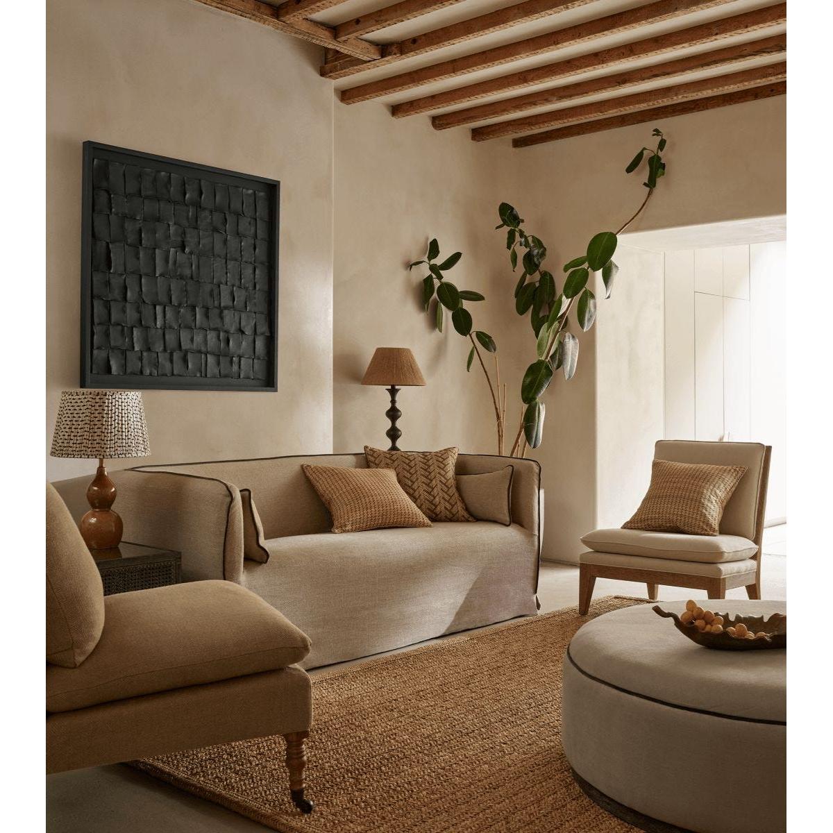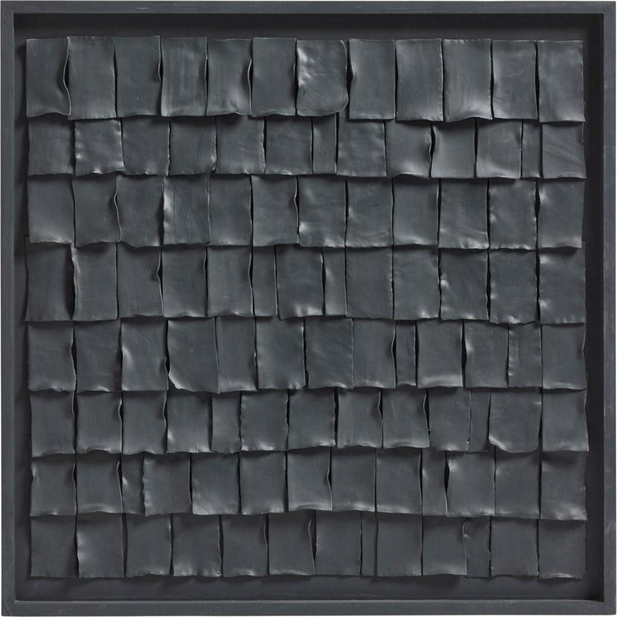 The charcoal painted finish of our Metamorph Wall Art is brought to life through its raised clay panels, which are made to look like patches of paper crinkled at the edges. The tiles are cleverly laid to create contrast and shadows, adding many layers of interest to the design. It has been designed exclusively for OKA and is handmade by a company committed to creating employment for local South African women in need; many of whom have been affected by poverty and HIV. The women learn to specialise in specific techniques, which they are able to execute from the comfort of their own homes, providing essential work and skills to poverty-stricken communities. Every piece of clay is handmade and crafted into the artwork ensuring each final design is utterly unique.