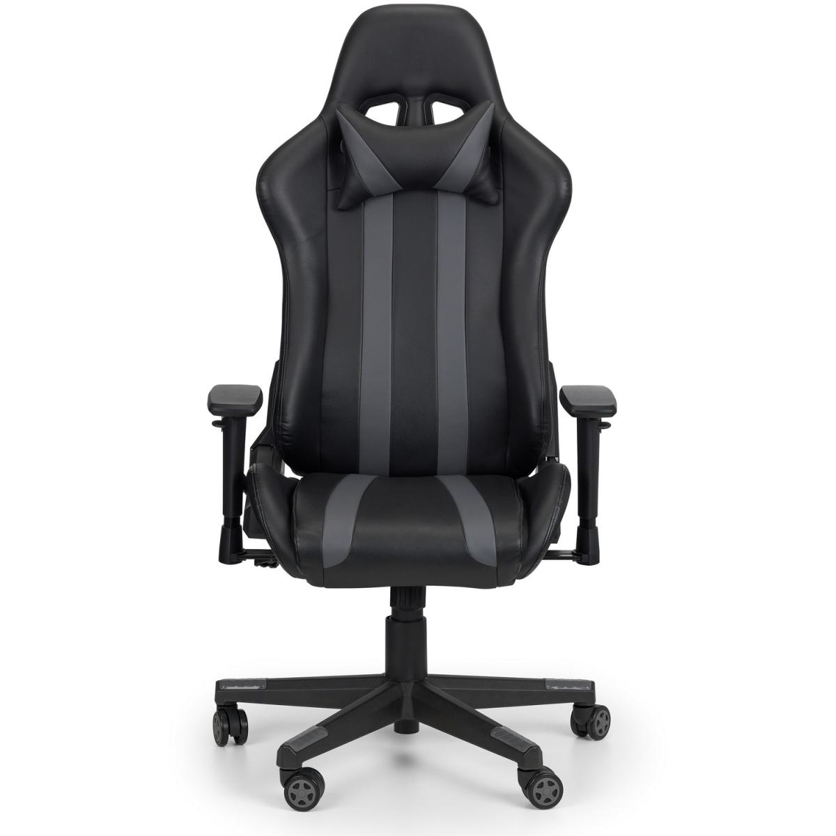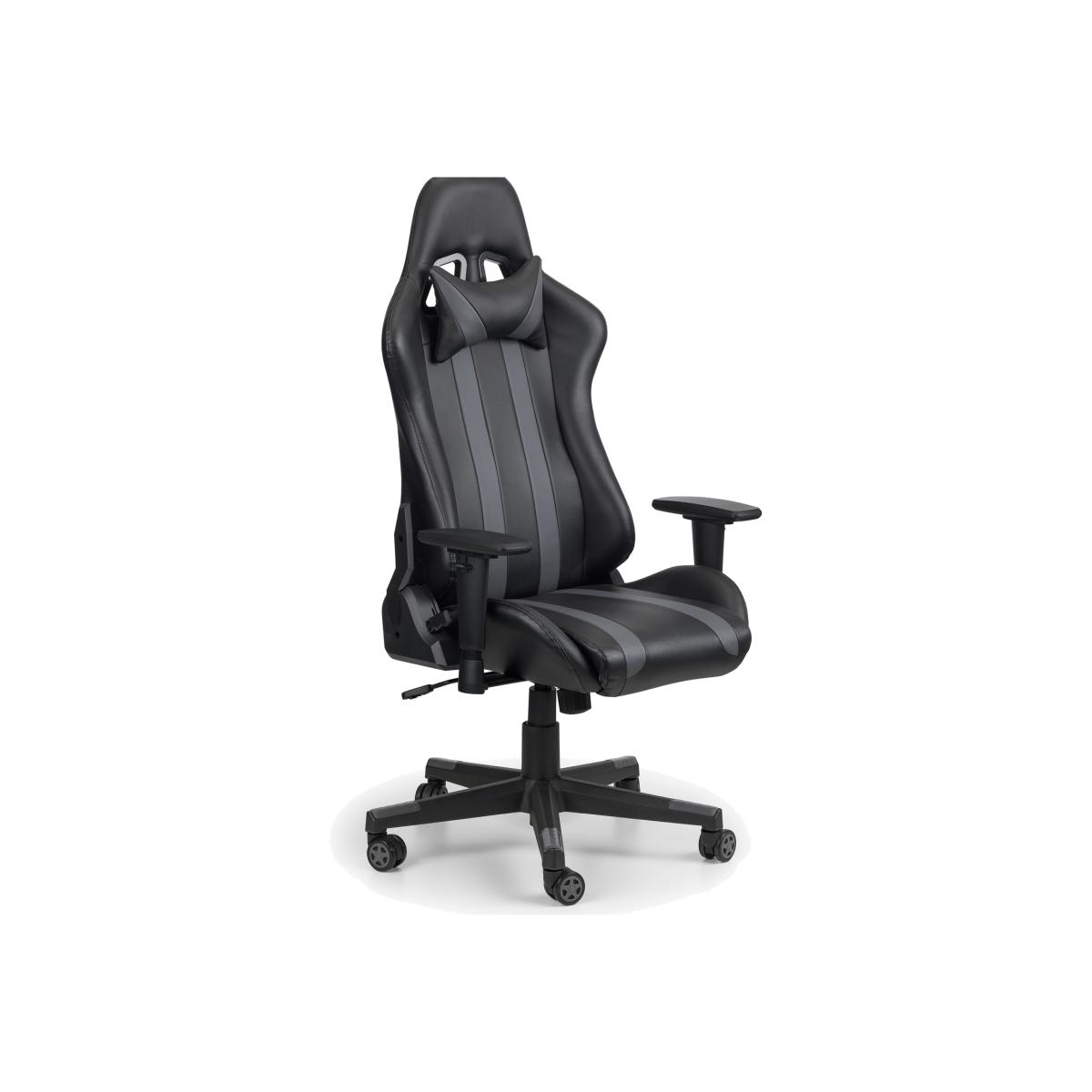 Finished in a black faux leather with striking grey accents, the Meteor Gaming Chair features a high back with a head pillow, offering full back and neck support. This Chair can be fully adjusted including the armrests, allowing you to get into your best position for your hours of game play. Easily move around on the Meteor gaming chair upon its 5 castors, suitable for gamers or those spending long days at a desk.
