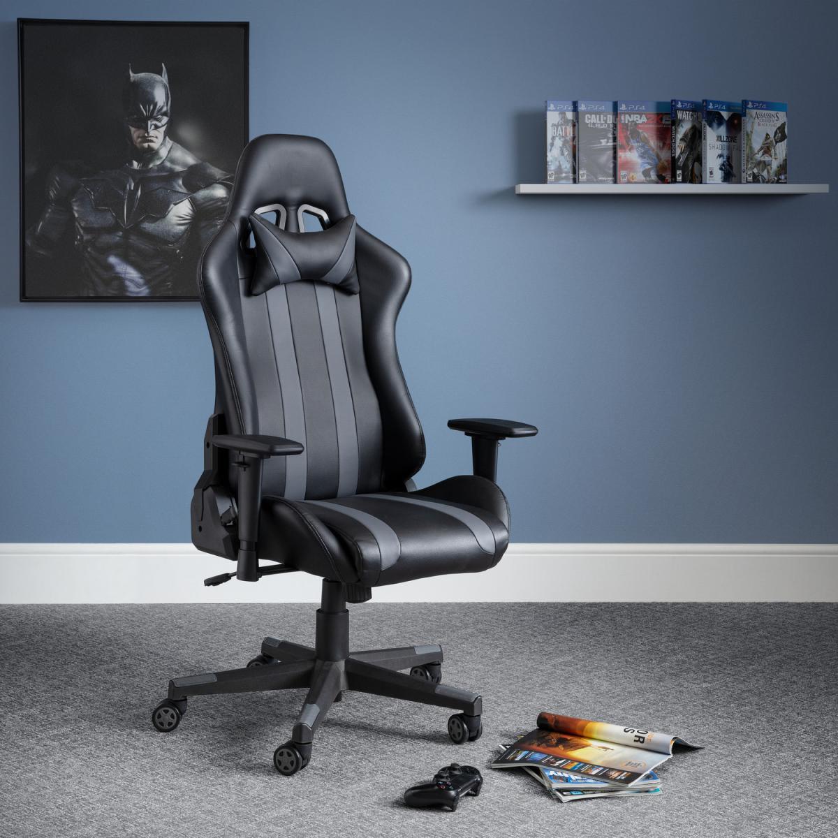 The Meteor gaming chair in black and grey makes for a sleek, contemporary statement piece, especially in modern or industrial-inspired interiors. Its streamlined design and neutral colour palette make it versatile enough to blend seamlessly into a home office or dedicated gaming space. I’d style it with minimalist furniture, such as a simple desk and functional shelving, to keep the focus on the chair’s sporty aesthetic. Practical styling tips include pairing it with a textured rug to soften the overall look and adding ergonomic accessories like a matching grey cushion for extra comfort. This piece works well in spaces that balance form and function, giving your setup both style and practicality.