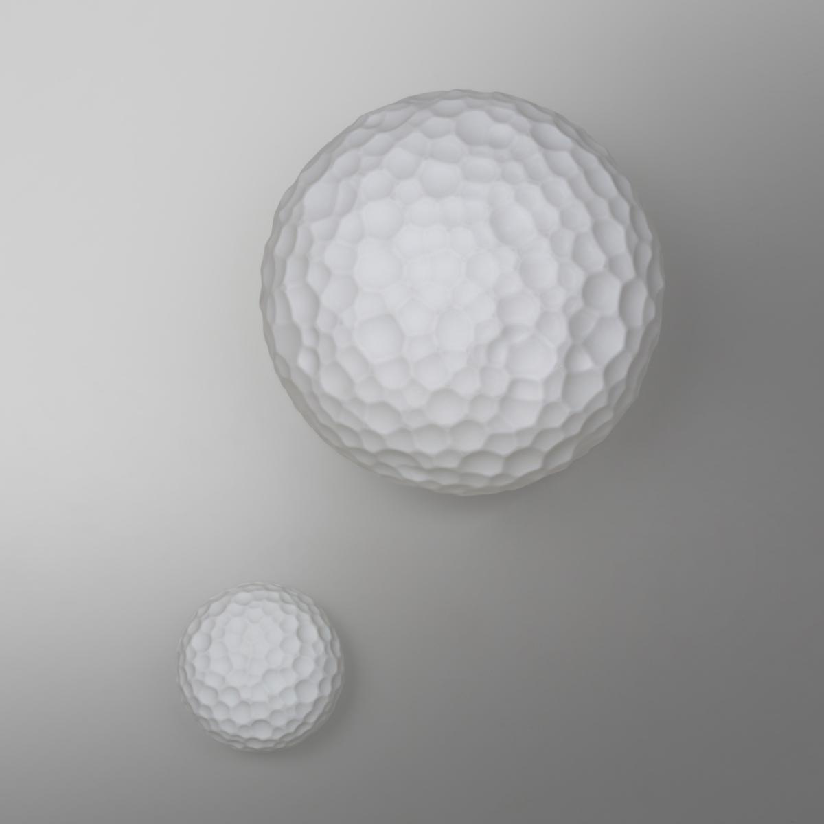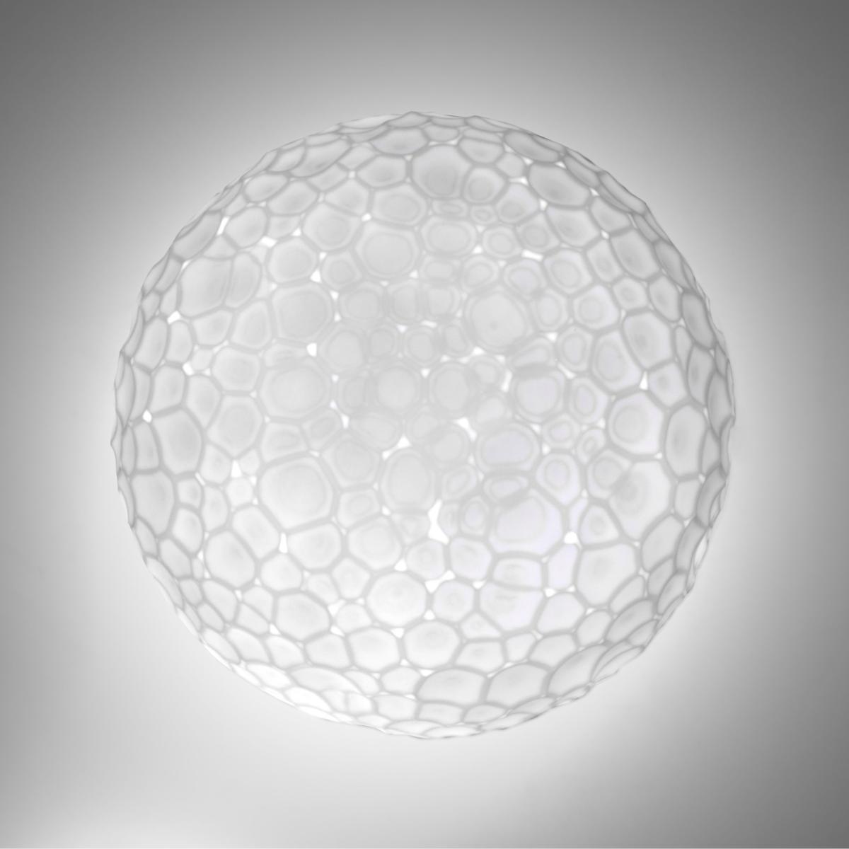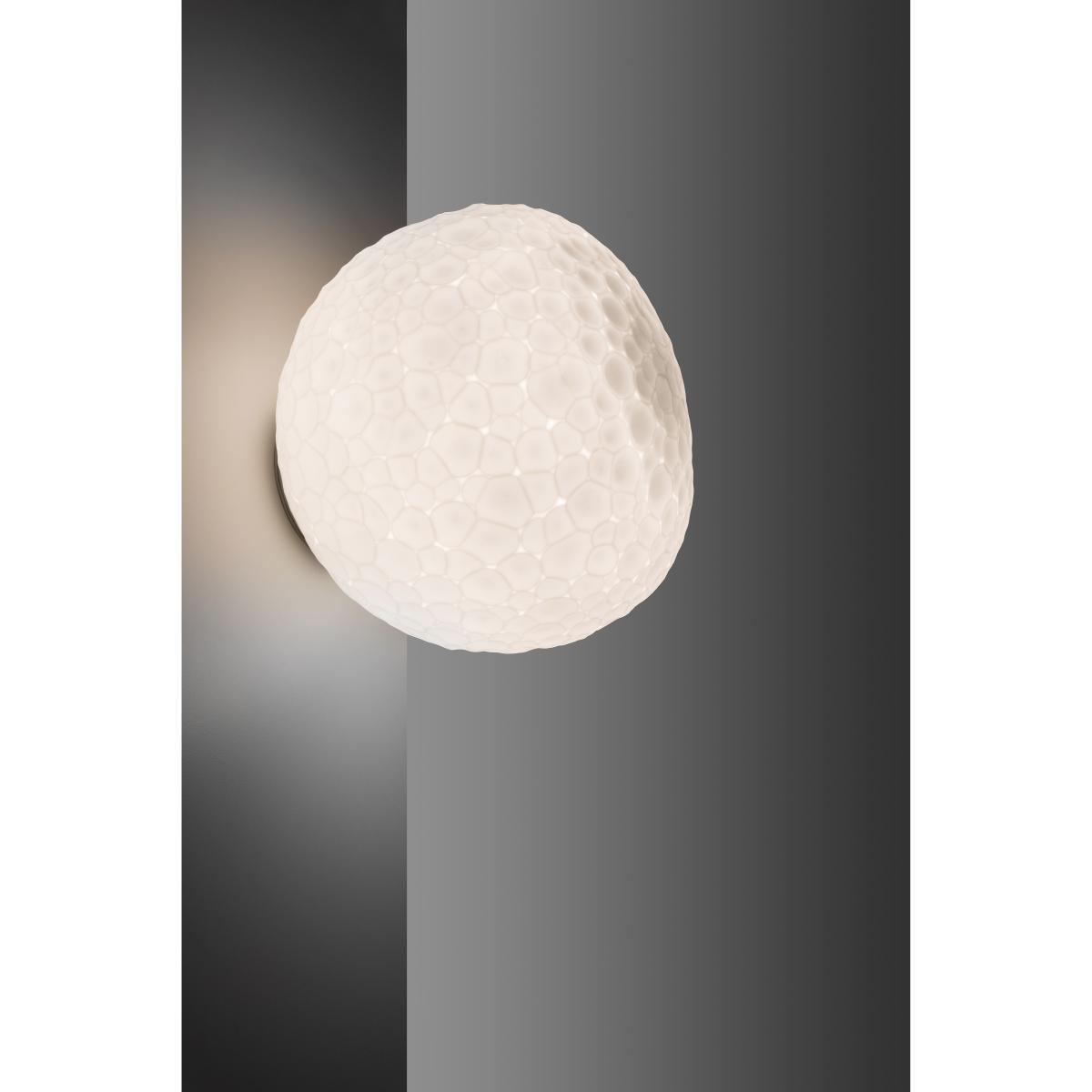 Meteorite originates from the pursuit of a new sensibility, a new expressive language for lighting blown-glass. The starting point was our fancy for Venetian “beaten” glass, for the grinding effect, and for the strong charm of the “unfinished” feel that such kind of process brings to glass. ? We designed a special glass-blowing and grinding process, which allows to obtain impressive lighting depth in the illuminated object, and to make this beauty accessible or – we might say – democratic. ” Pio e Tito Toso. A family of lamps comprised of four different types, with a double-layer artistic glass diffuser obtained by means of the craft still glass blow moulding technique followed by frosting.