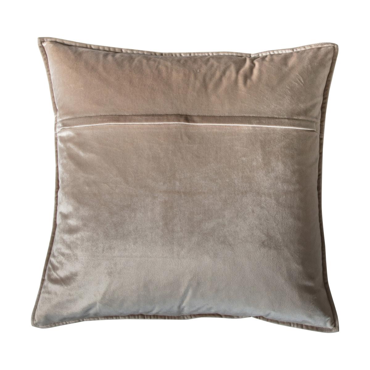 Elegant cushion in an opulent oyster toned velvet featuring an oxford trim. Elegant cushion in an opulent oyster toned velvet featuring an oxford trim.