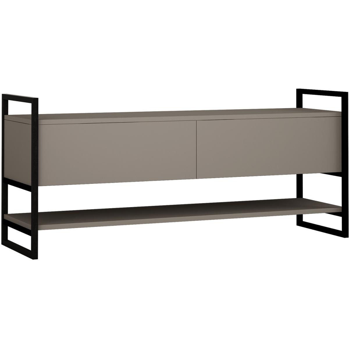 Upgrade your living space with this sleek and stylish TV stand. With ample storage options including two cabinets and an integrated shelf, this stand provides a clutter-free solution for all of your entertainment essentials. Constructed with a thick metal frame and legs, it's built to withstand everyday use and maintain its stability for years to come. The modern and industrial look of this stand will elevate any living space, making it the focal point of the room. Available in a variety of colours to match your decor, finding the perfect fit for your space has never been easier. This stand is not just a functional piece of furniture but also gives an aesthetic touch to your room. This TV stand is perfect for those who want to store their TV and other entertainment items in one place.