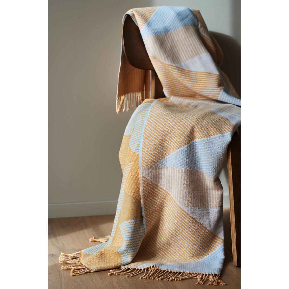 I love this throw for its bright, sunny yellow hue, which instantly adds warmth and positivity to any space. It's versatile enough to work well in both modern and coastal interiors, where it can brighten up neutral sofas or bed linens. Practical styling tips include layering it over a simple sofa or armchair for a pop of colour, or folding it neatly at the foot of a bed for a cheerful finish. Its size makes it perfect for draping or using as a lightweight cover, providing both style and comfort without overwhelming the room. The geometric pattern also adds a contemporary touch, making it an easy update for a living room or bedroom refresh.
