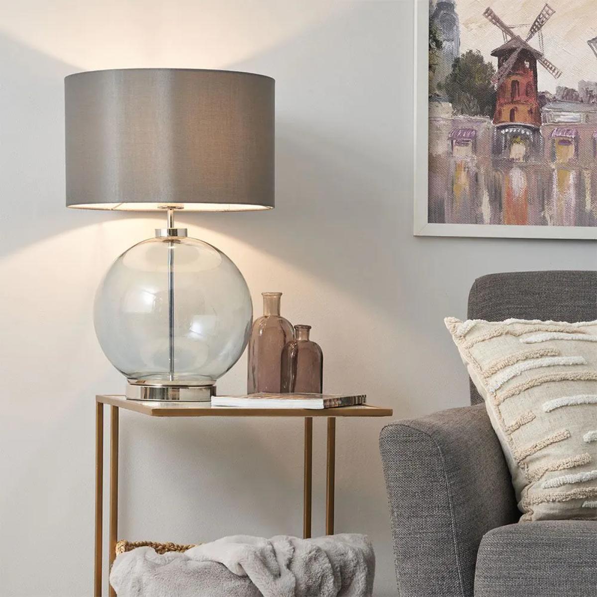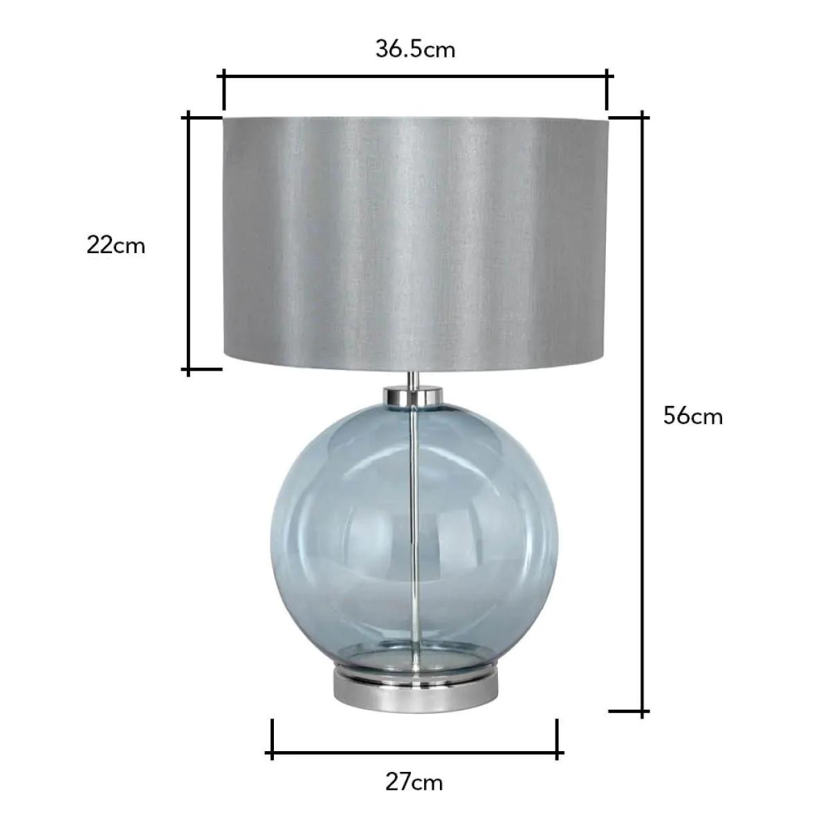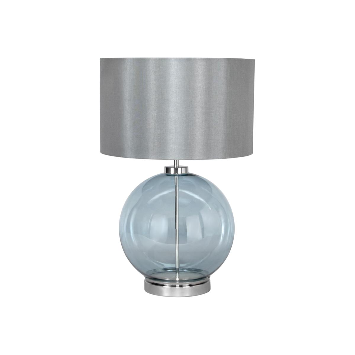 Add a striking modern accent with our Metro Blue Glass Sphere Table Lamp. The blue hue of this table lamp is a wonderful way of adding colour to a sleek minimalist aesthetic. The grey lampshade diffuses a warm glow.