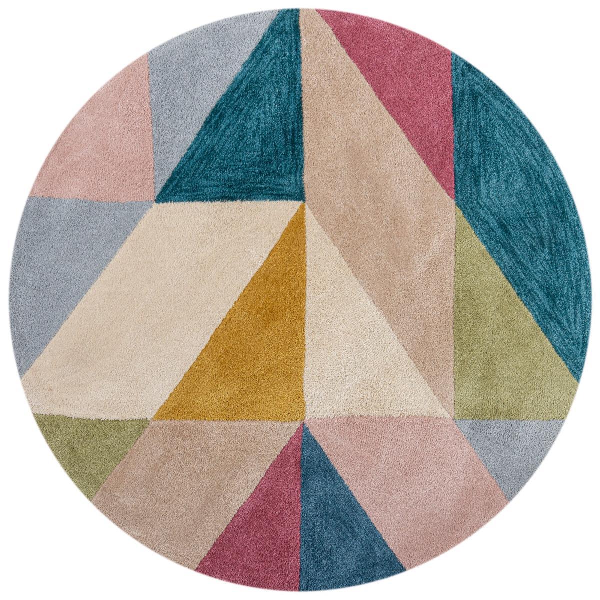 Introducing the Metro Circle Rug, pairing on-trend shades with a bold geometric design. Tufted in 100% polyester, Metro Circle Rug uses a high/low effect to add depth and shape. Super-soft underfoot with minimal shedding, perfect for on-the-go homes. We love using the Metro Circle Rug to add a touch of comfort to living rooms and bedrooms. A small amount of fibre loss is normal. Do not pull loose fibres, just trim with scissors. Safe for use with anti-slip backing on a heated floor. Use a suction type vacuum - rotating brushes may damage this rug. Re-roll your rug pile out for 24 hours to reduce curling. Regularly turn to ensure even wear. An anti-slip mat will help prevent slipping. Blot spills immediately with a clean, dry white cloth. Do not rub. Do not place this rug near an open fire. Please do not leave children or infants unattended.