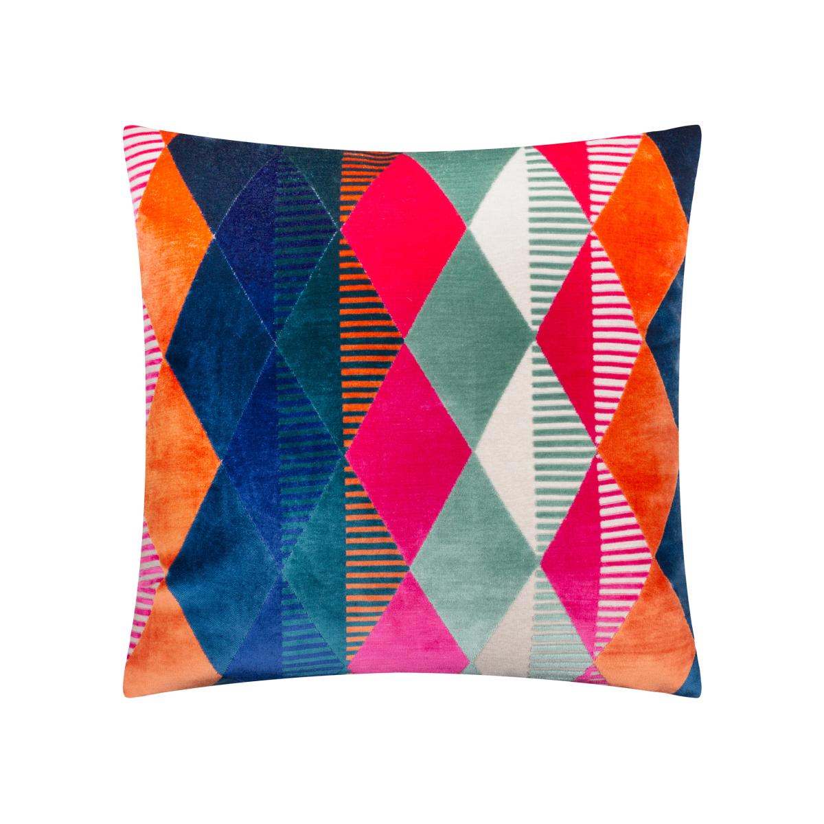This cushion cover is a fantastic addition for injecting colour and visual interest into both contemporary and eclectic interiors. I love the rich velvet texture, which adds a touch of luxury and makes it an easy way to elevate a sofa or armchair. The bold, geometric harlequin pattern works well as a statement piece or mixed with more neutral tones to create a vibrant, layered look. For styling tips, pair it with simple, solid-coloured cushions to let the pattern stand out, or combine it with other textured fabrics for added depth. It’s especially effective in living rooms with a modern vibe or even in boho schemes where playful patterns are welcome. Overall, it’s versatile and eye-catching - a real design statement in a practical, easy-to-maintain cover.
