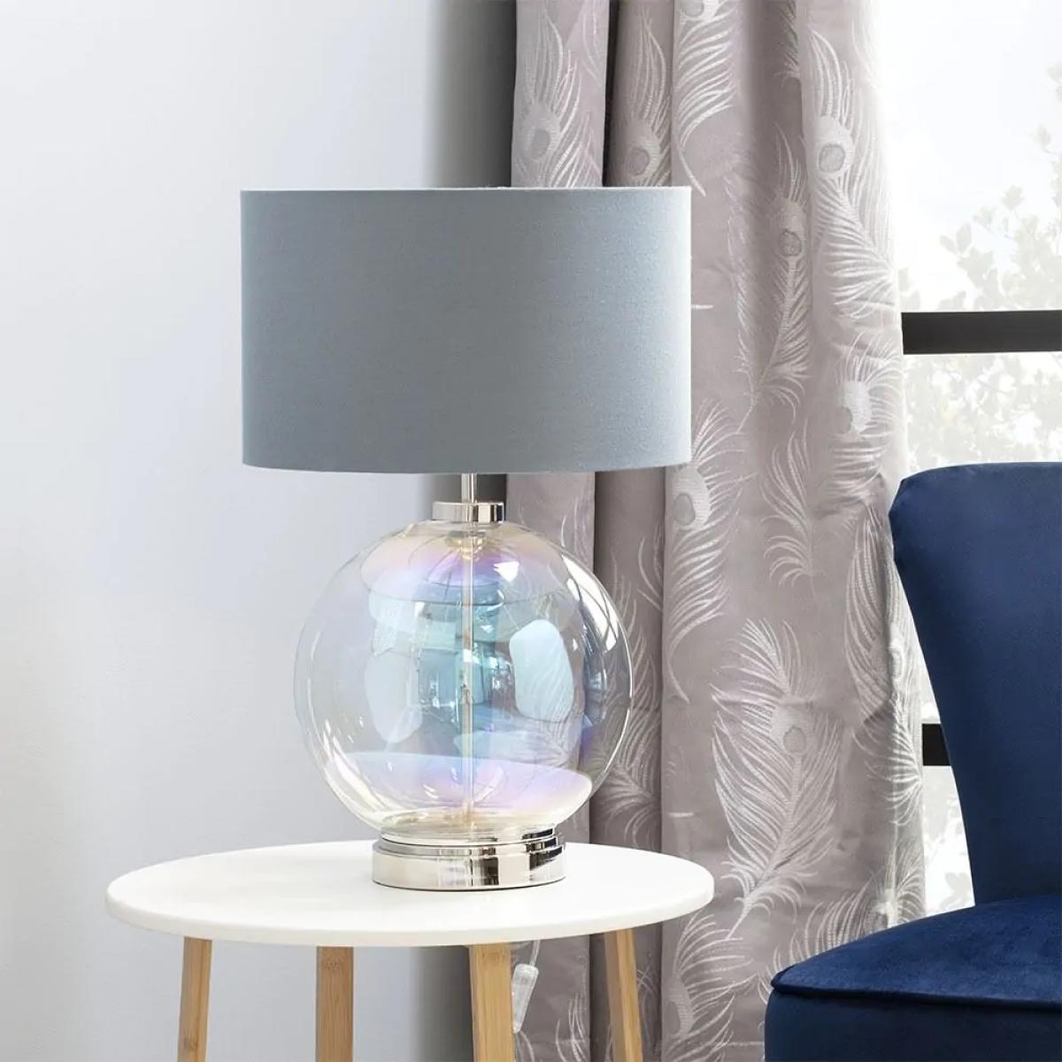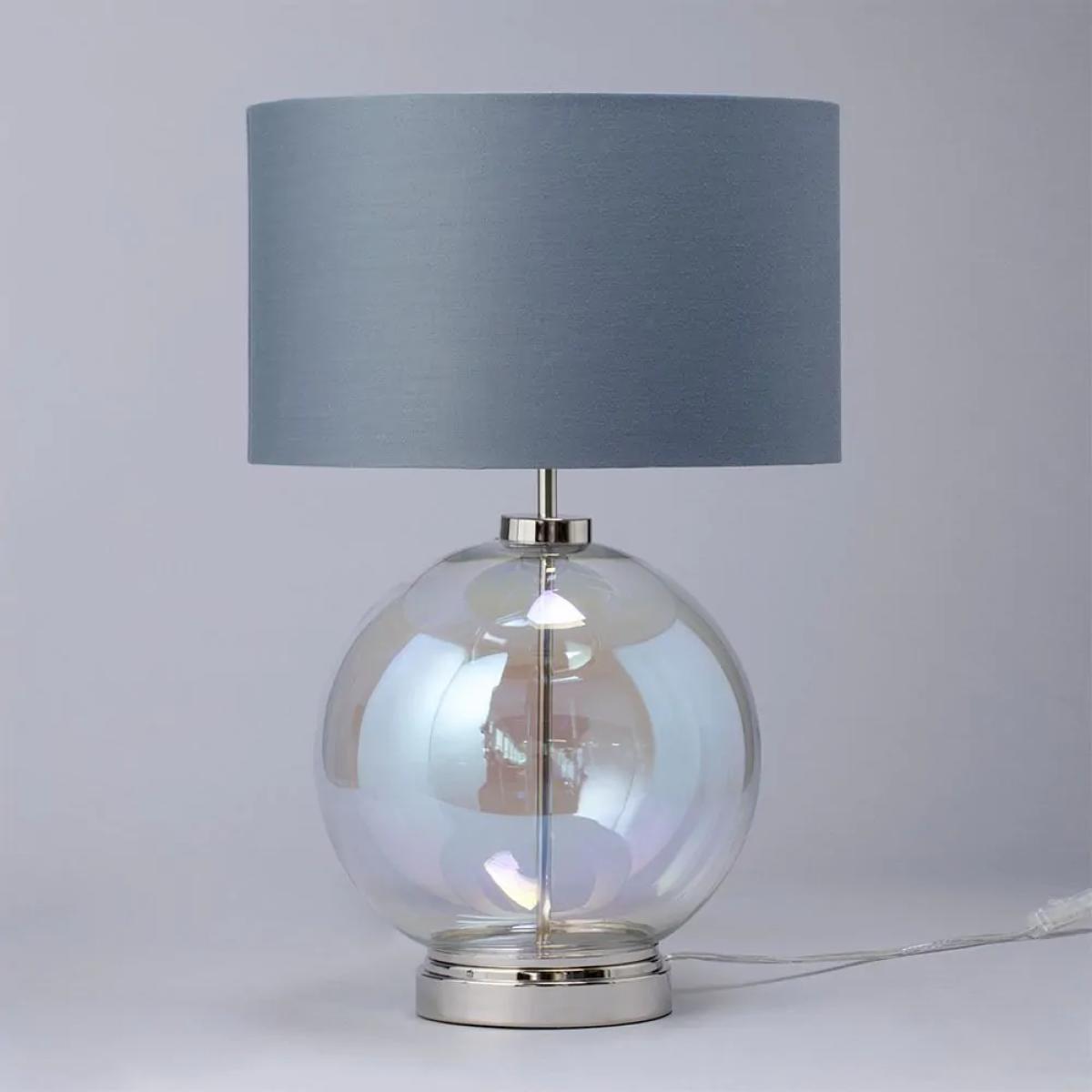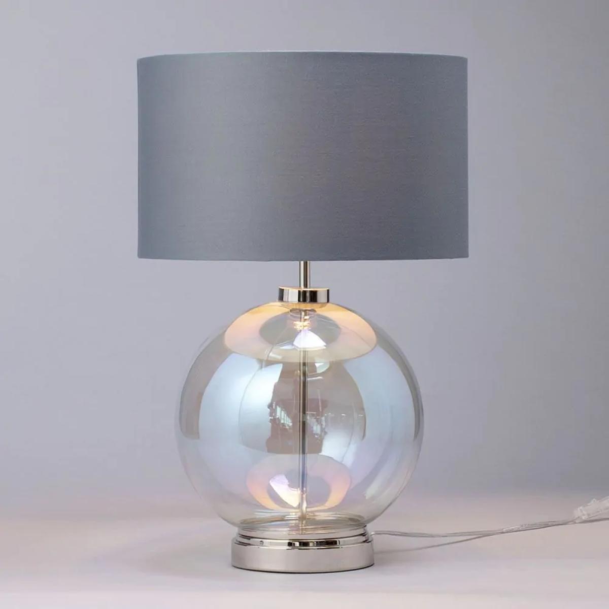 Metro Iridescent Glass Sphere Table Lamp, Nickel and Grey