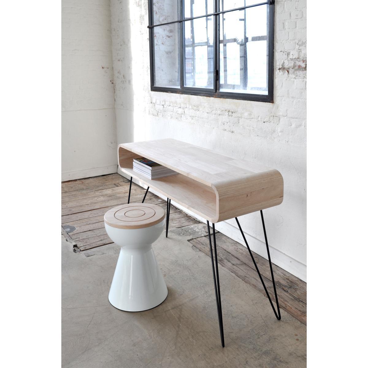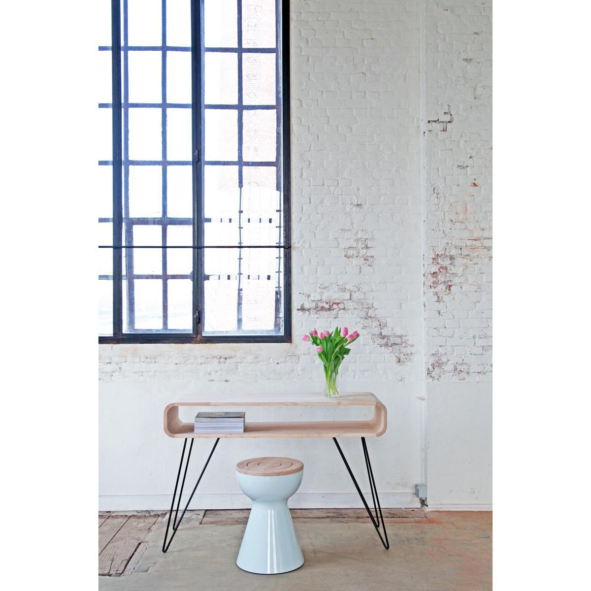 I love this little console for its clean, minimalist look and the natural wood finish, which brings warmth to a space. It works particularly well in modern, Scandinavian, or contemporary interiors, providing a sleek surface without overpowering the room. Its slim profile makes it a practical addition for narrow hallways or behind a sofa, offering space to display decorative items, lamps, or photos. For styling tips, consider layering with textured trays, vases, or artwork to add personality. Pairing it with metal or glass accessories can enhance its contemporary feel, while its natural wood finish ensures it remains versatile enough for more casual or Scandinavian-inspired schemes.