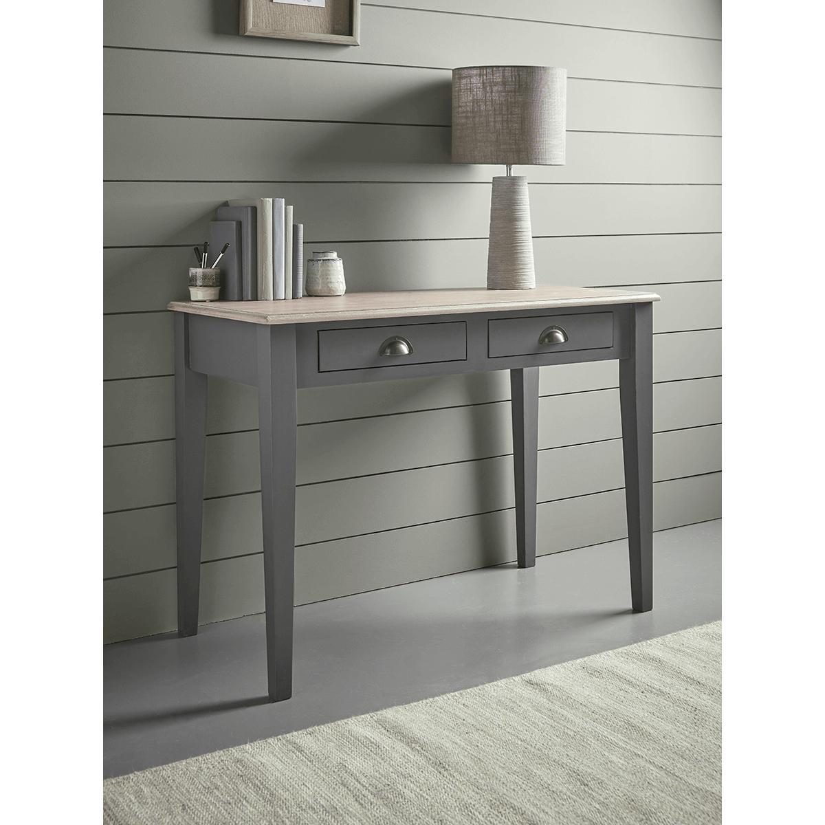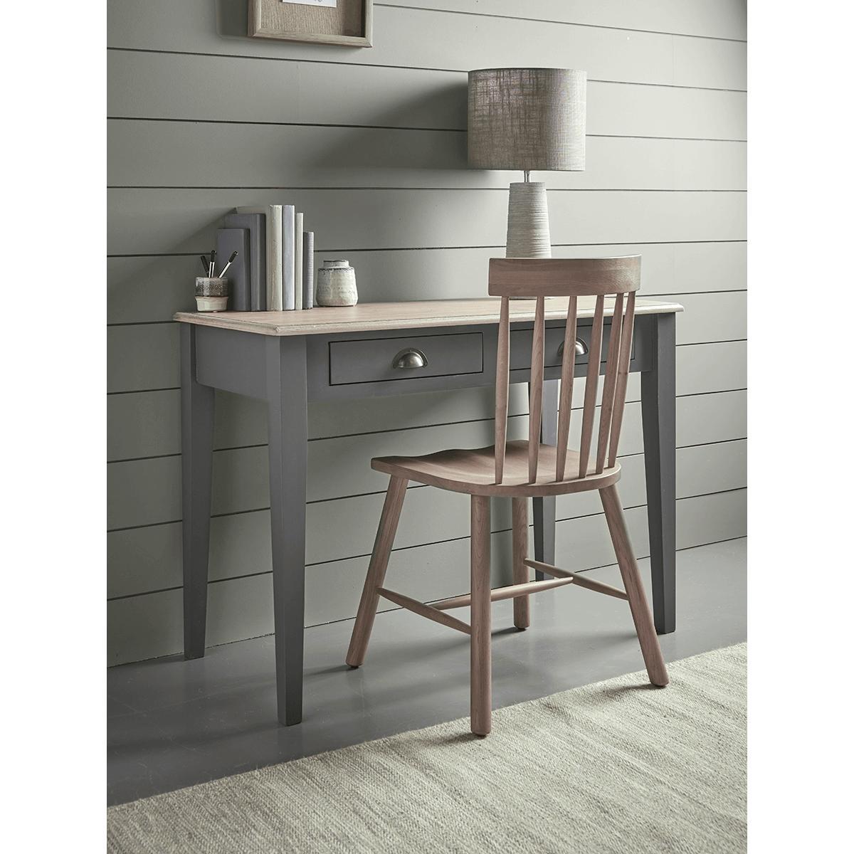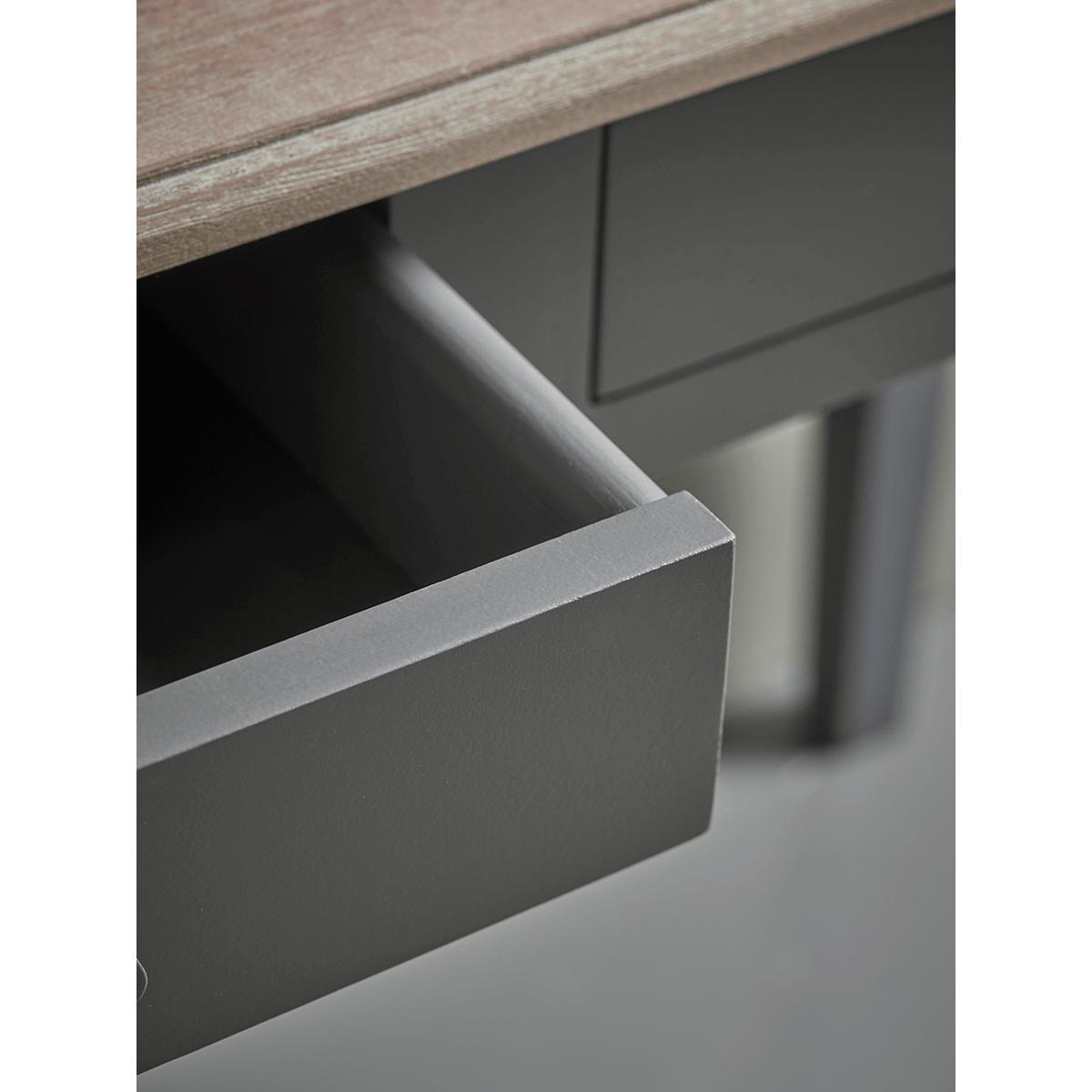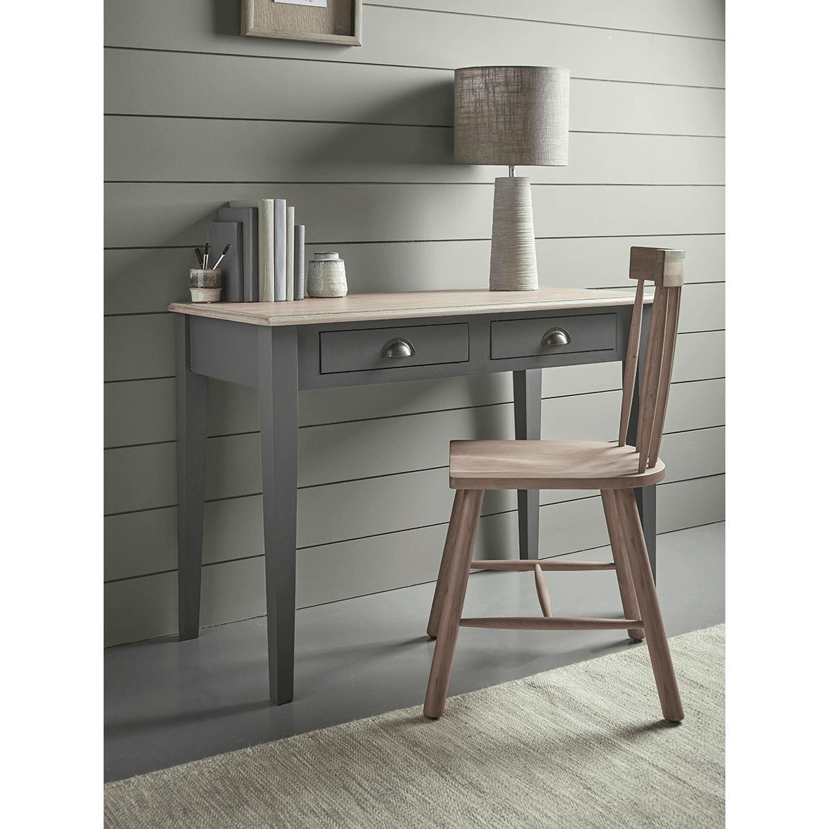 Expertly crafted using pine and spruce, our Mette Desk has a sleek painted finish and a contrastingly bright exposed wood top, resulting in a classic, timeless aesthetic that is hard wearing and practical. Built to complement both traditional and contemporary homes, this unit has two useful drawers on integral wooden gliders and is finished with stylish burnished metal cup handles. Discover the rest of our. Mette. Range.