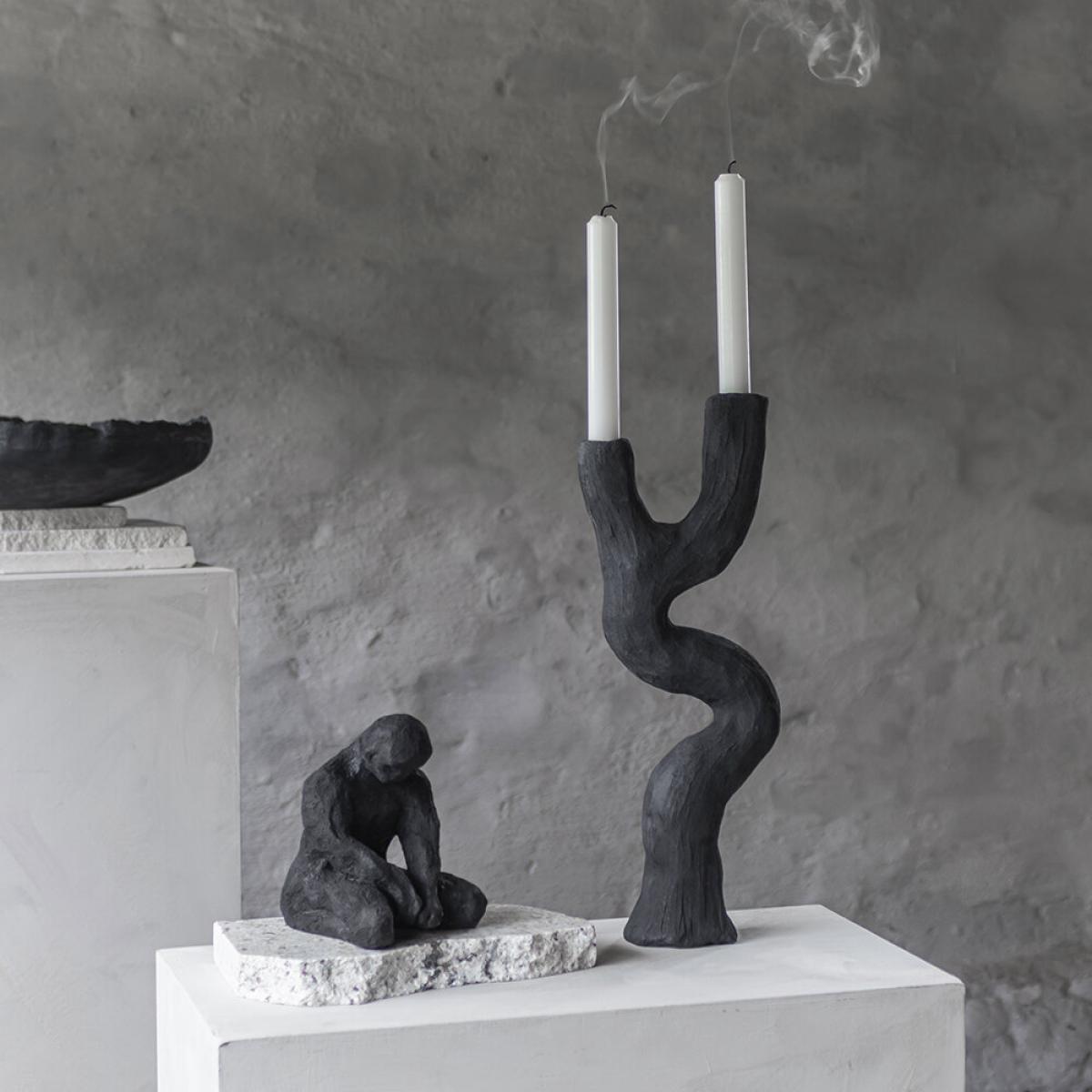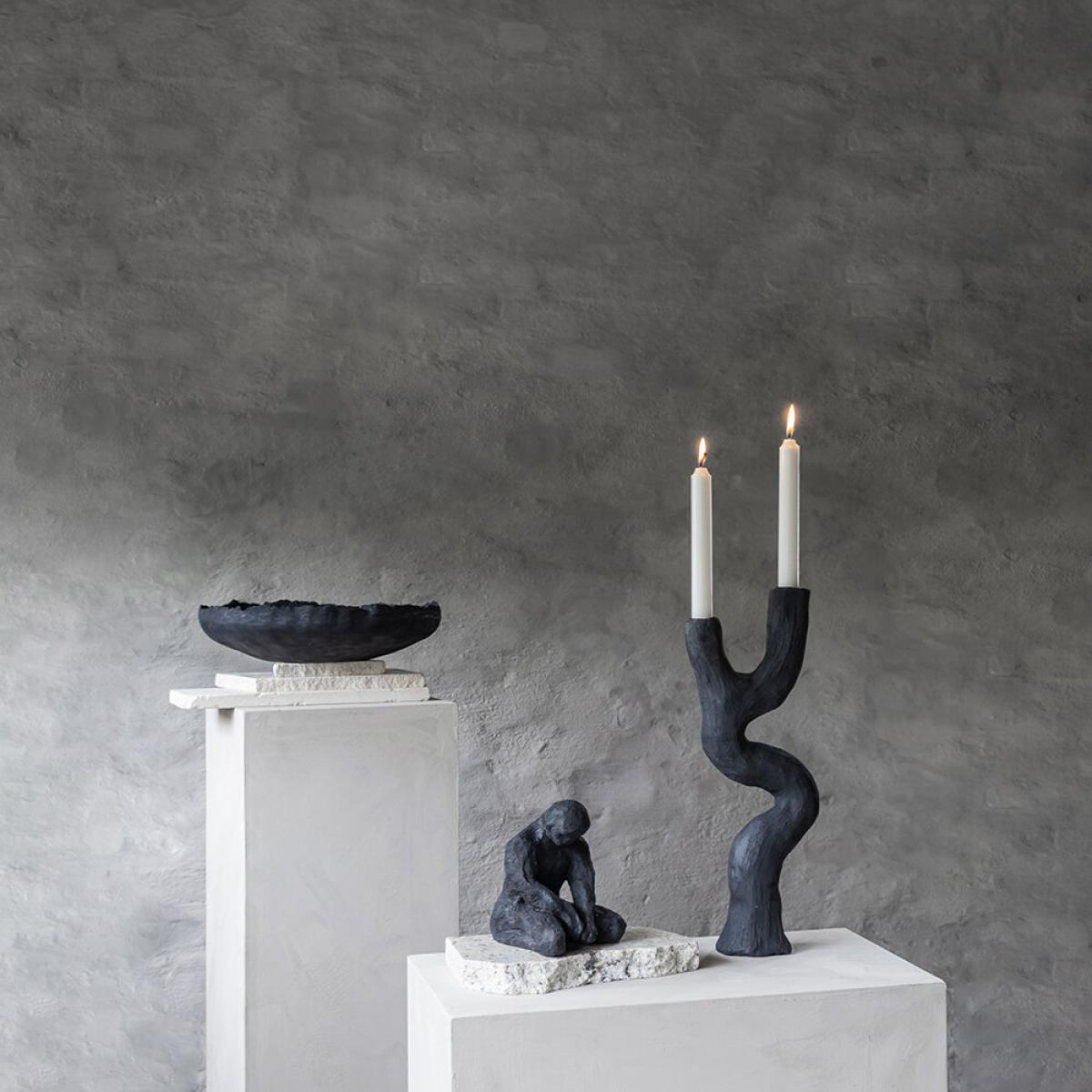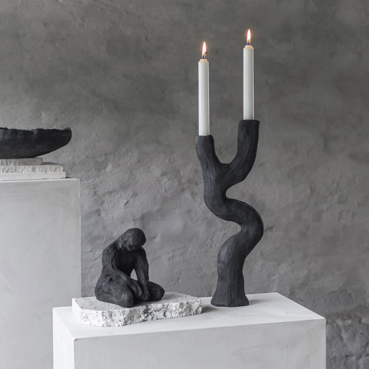 Create a unique centrepiece with this candleholder from Mette Ditmer Denmark. Made from stone resin, it is less fragile than ceramics so will withstand everyday life without breaking too easily. With an organic form and rough surface, it brings artistic style to your space and beautifully complements a modern interior. Key features: * Material: stone resin * Dimensions: H41xW8xL16cm * Artistic form * Holds two candles * Finished by hand * Each product is unique * More home accessories available from Mette Ditmer Denmark