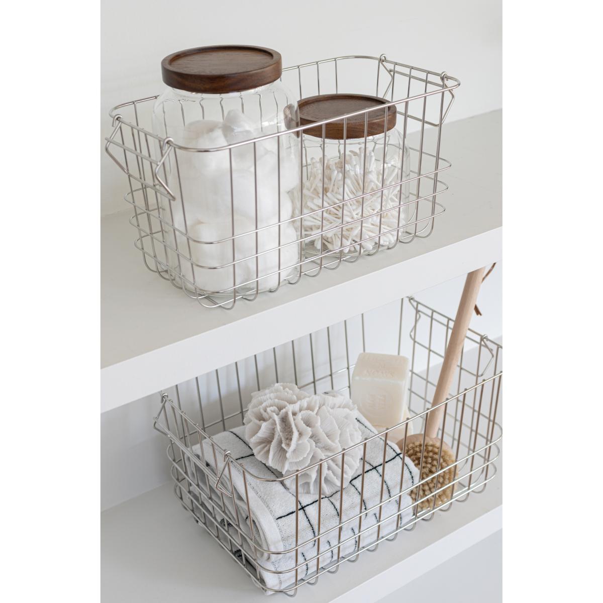 I love this basket because of its sleek chrome finish, which lends a modern and versatile touch to various interiors. Its open wire design makes it ideal for organising items like toiletries, kitchen essentials, or everyday household bits, while still allowing you to see everything at a glance. It works particularly well in minimalist, Scandinavian-inspired, or contemporary spaces where clean lines and functional styling are key. For practical tips, try grouping smaller items within the basket to keep surfaces clutter-free, or pop it on a shelf or countertop for an uncluttered yet accessible storage solution. The medium size is great for adding organisation without overwhelming the space, making it a stylish yet practical addition to your home.