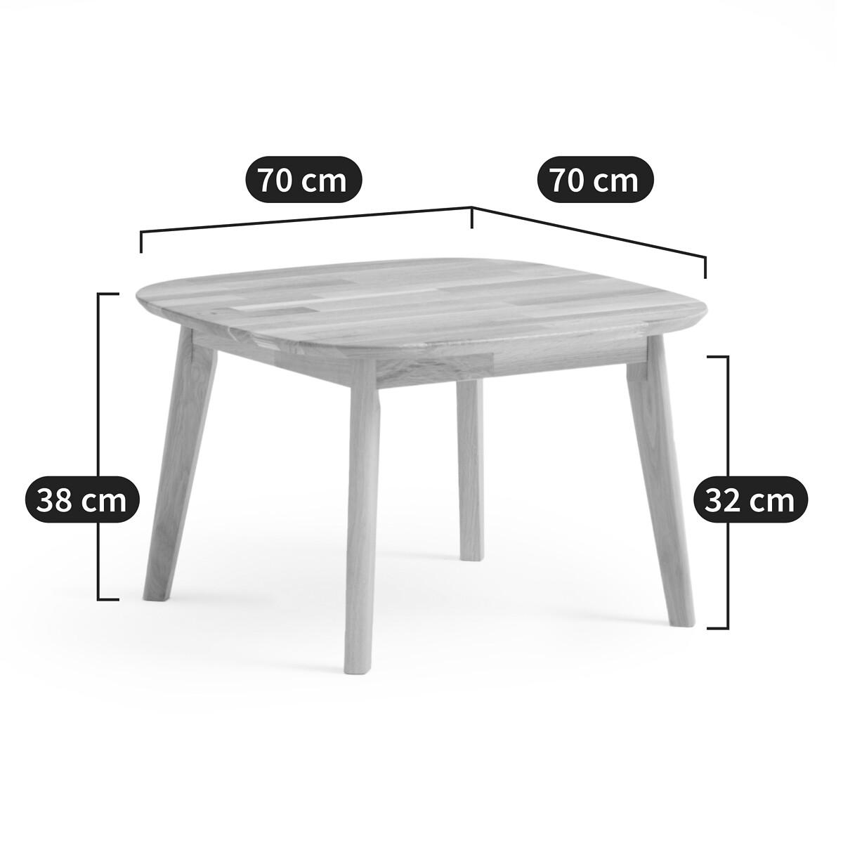 With its square-shaped, finger-jointed oak top, the Metuza coffee table combines simplicity and modernity. Its clean and soft lines will allow it to easily integrate into any interior.. Made in Europe. Product Details • Finger jointed oak top • Solid oak legs • Finish: nitrocellulose varnish Care instructions • To protect your table, consider trivets, coasters and placemats. Dimensions Total • Width: 70cm • Height: 38cm • Depth: 70cm • Height of legs: 32cm • Assembly required. • Made in Europe. • WOOD FROM SUSTAINABLY MANAGED FORESTS. FSC® certified wood comes from forests that are environmentally, socially and economically well managed. Parcel Dimensions1 parcel • L78.5 x H8 x D76.5cm. 9.5kg