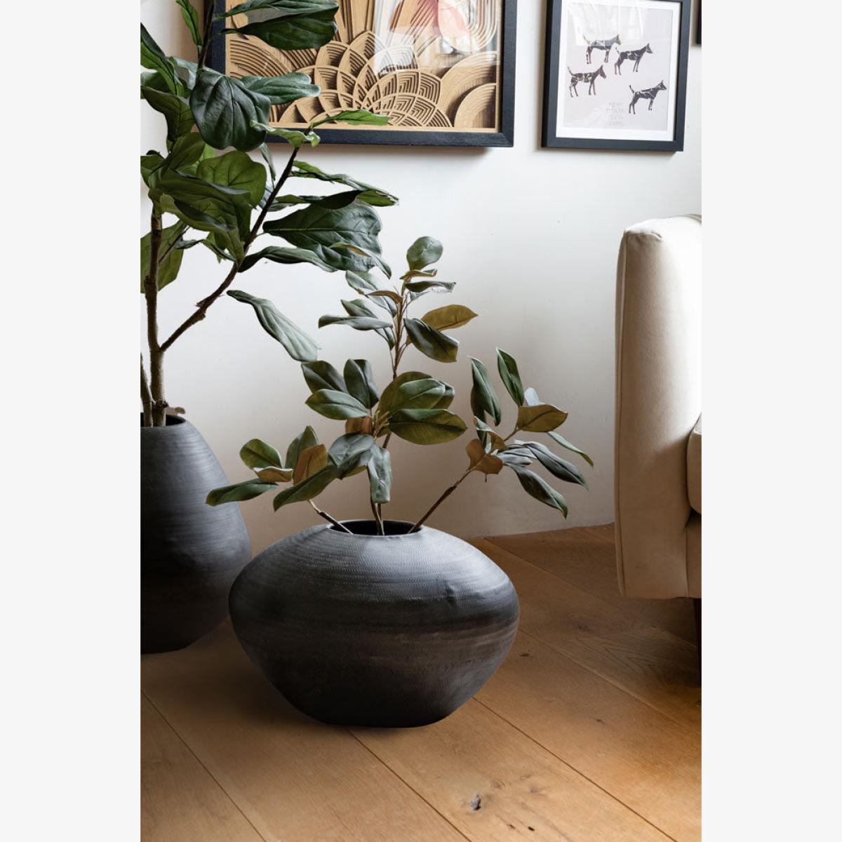 <!--td --> Introducing the sphere Mexica Patterned Large Vase, an eye-catching piece that blends classic elegance with modern design. This compact black vase is made to make a statement in any room - its unique shape and arrow pattern make it the ideal addition to elevate your surroundings. The smart black finish complements its contemporary design, while the arrow pattern provides a rich texture, creating a striking visual appeal. Put this vase in your bedroom, office, or living room to curate a beautiful focal point, complementing a wide range of décor styles, from minimalist to traditional. - Mexica Patterned Large Vase- Measures: W54cm x D54cm x H35.5cm - Material: 100% Aluminium