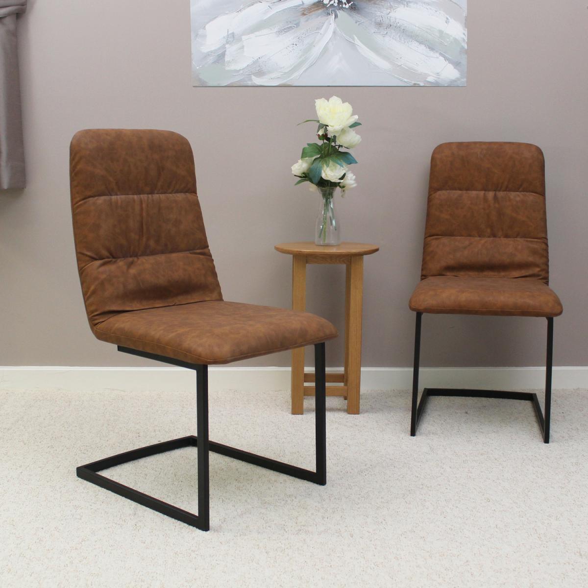 2 cantilever dining chairs that are sturdy with gently rounded edges on the seat pad. The backrest has an agreeable stitching finish creating an impressive look.