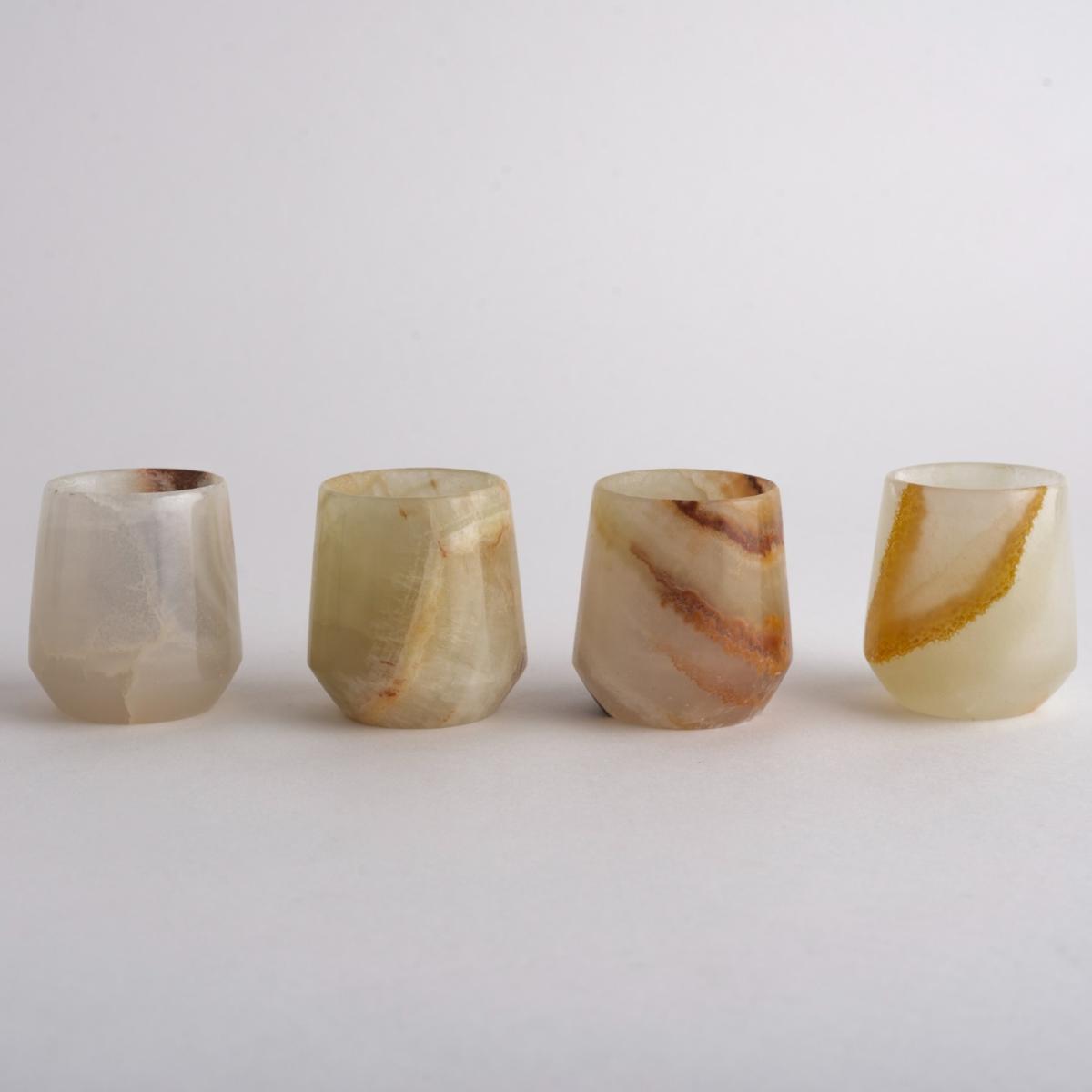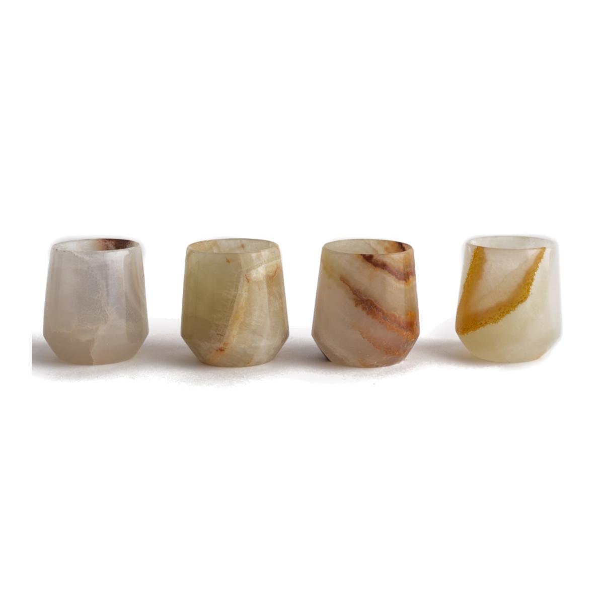 Mezcaleros are carved from a single piece of Green Ónix. Can be used for digestives, liqueurs, spirits liquor. You can freeze the glasses and serve your favourite drink, or at room temperature for those liqueurs that do not need to be cooled.