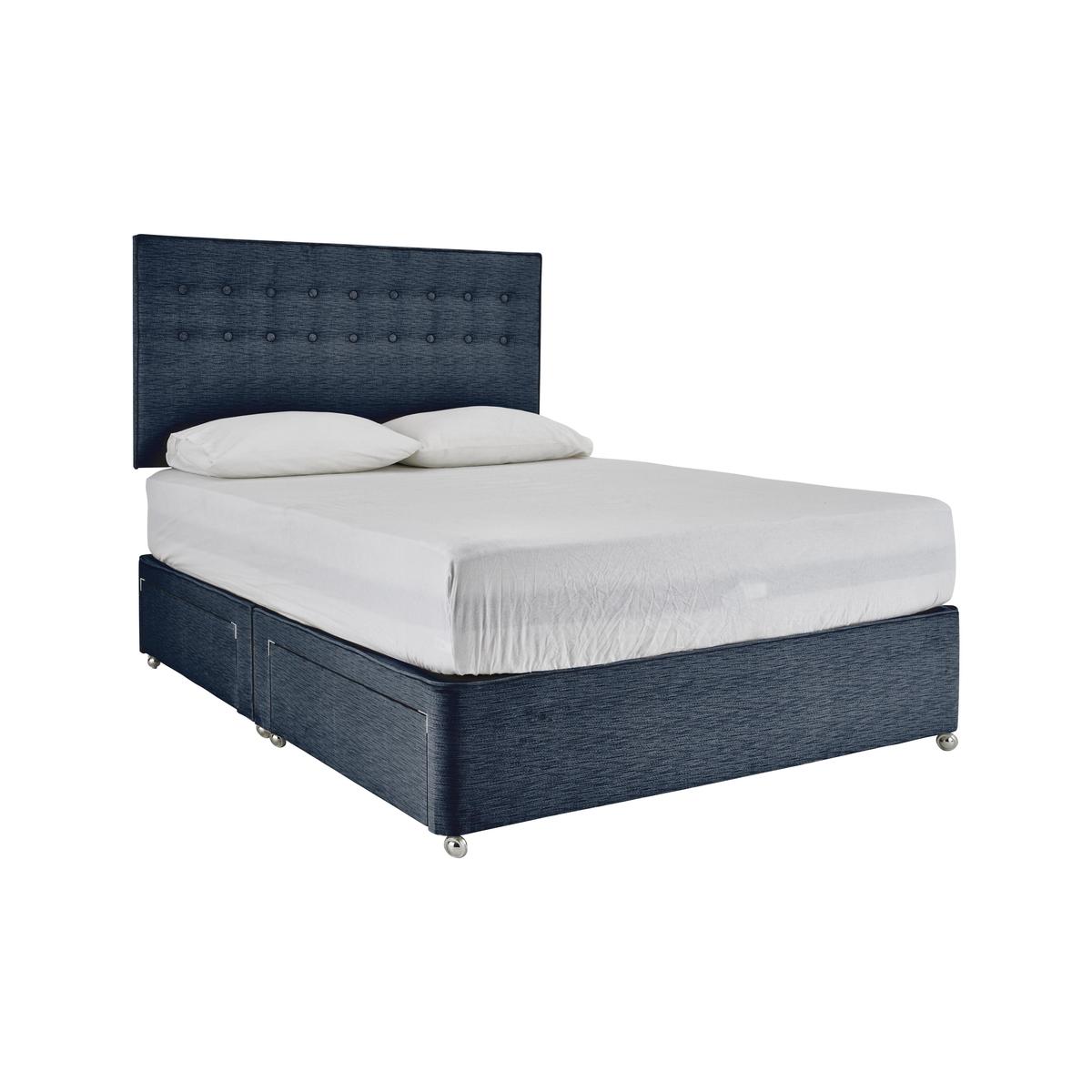 Headboard illustrated is not available online. High-quality platform top divan with great storage. Wide choice of drawer arrangements. Simple, contemporary design. Luxuriously upholstered in a stylish, modern fabric. Headboard is optional extra. Fits a standard size mattress. Mattress available separately. Product images are representative. Find out more.