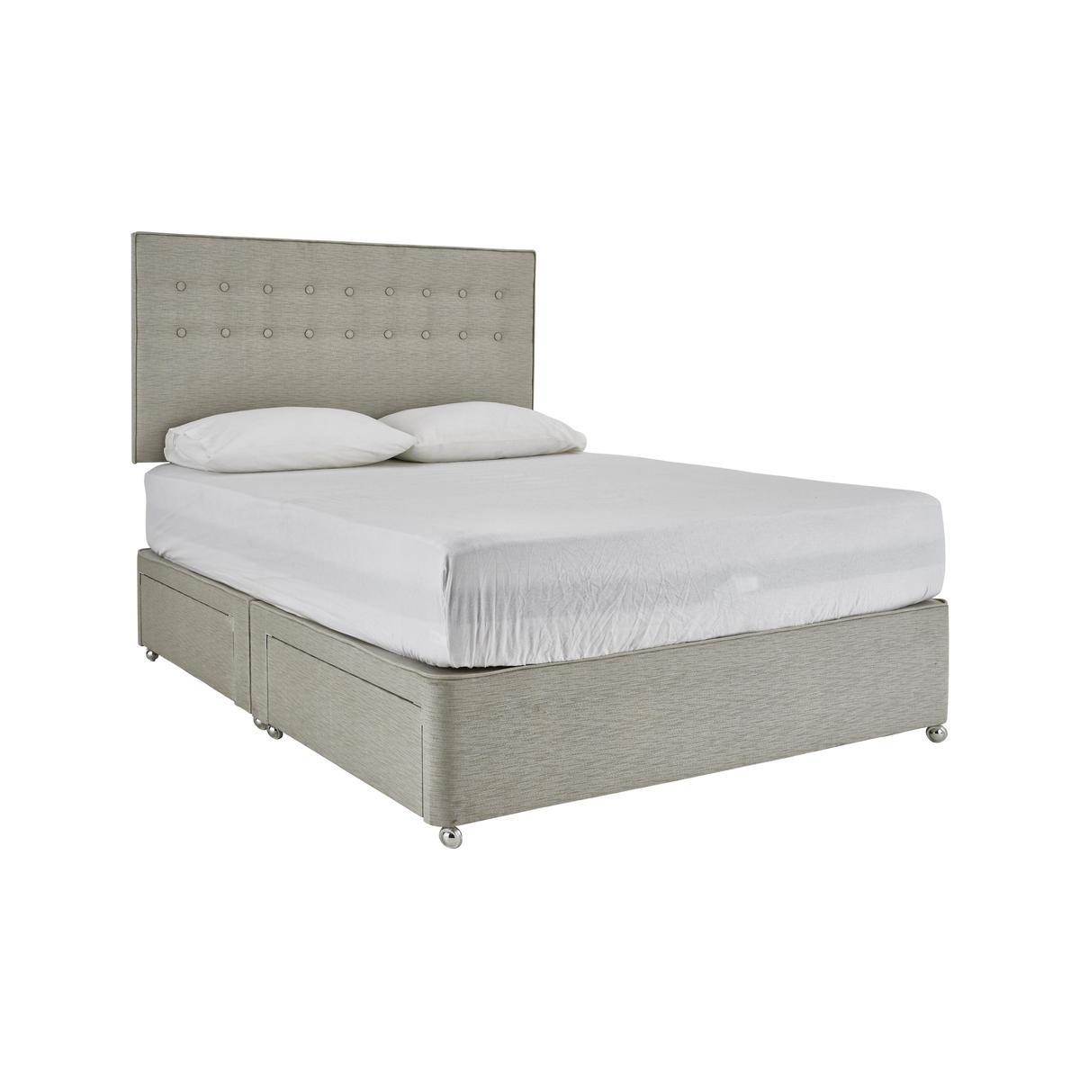 Headboard illustrated is not available online. High-quality platform top divan with great storage. Wide choice of drawer arrangements. Simple, contemporary design. Luxuriously upholstered in a stylish, modern fabric. Headboard is optional extra. Fits a standard size mattress. Mattress available separately. Product images are representative. Find out more.