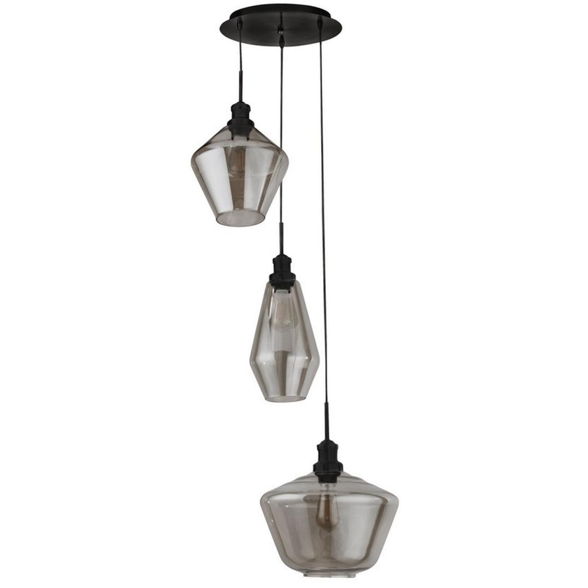 Mia 3 Light Cluster Drop Ceiling Pendant Smoked Glass - Black