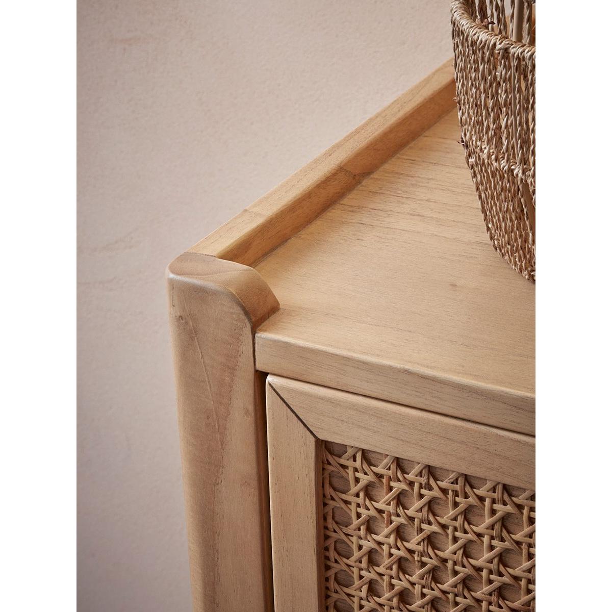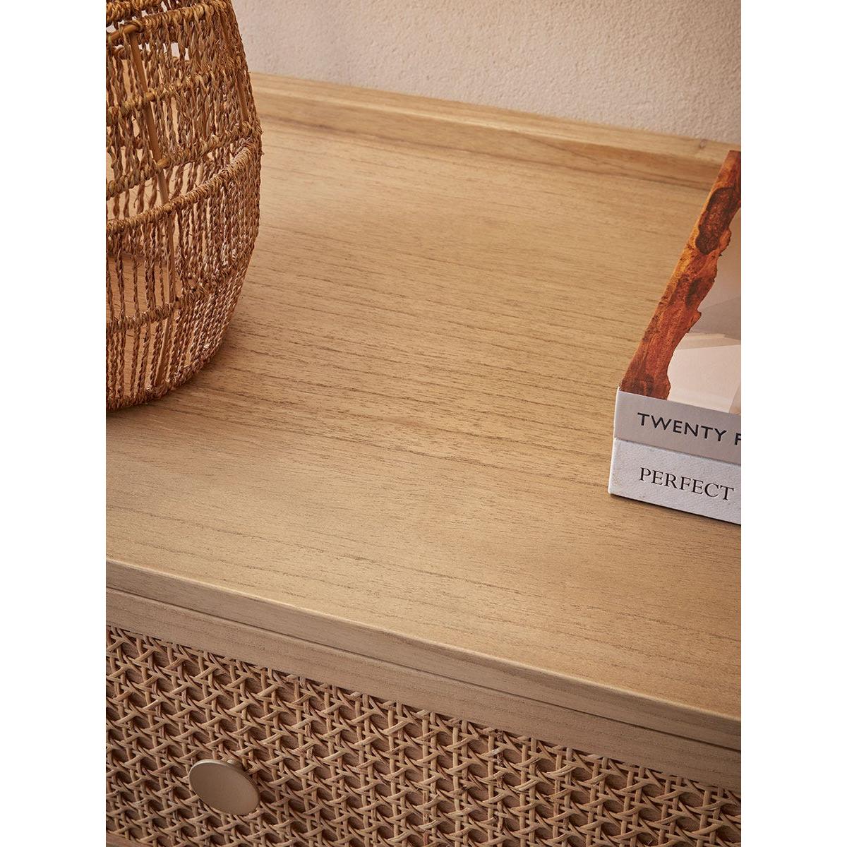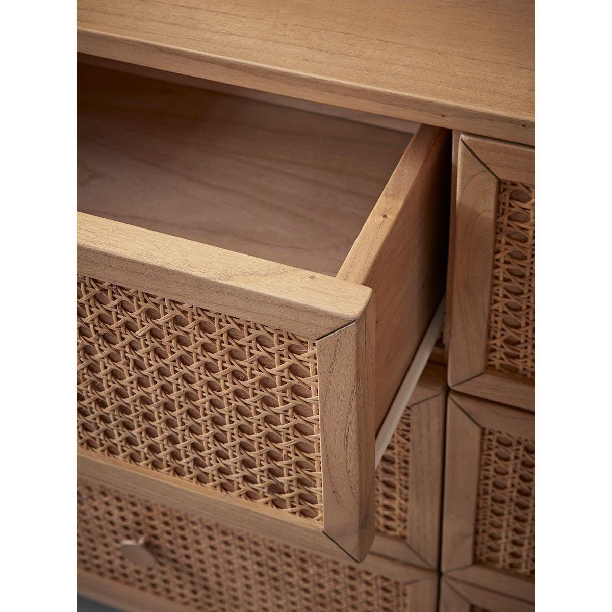 A shining light in the rattan revival, our Mia range features beautiful honey toned wood with textural woven inlays to the drawer and door fronts for a light and airy bedroom furniture range with a nod to mid-century style. The six rattan covered fronts on our Mia Chest of Drawers are loaded with texture which will play to changes in light. Matte gold hardware adds a luxe finishing touch. Discover the complete Mia bedroom collection.