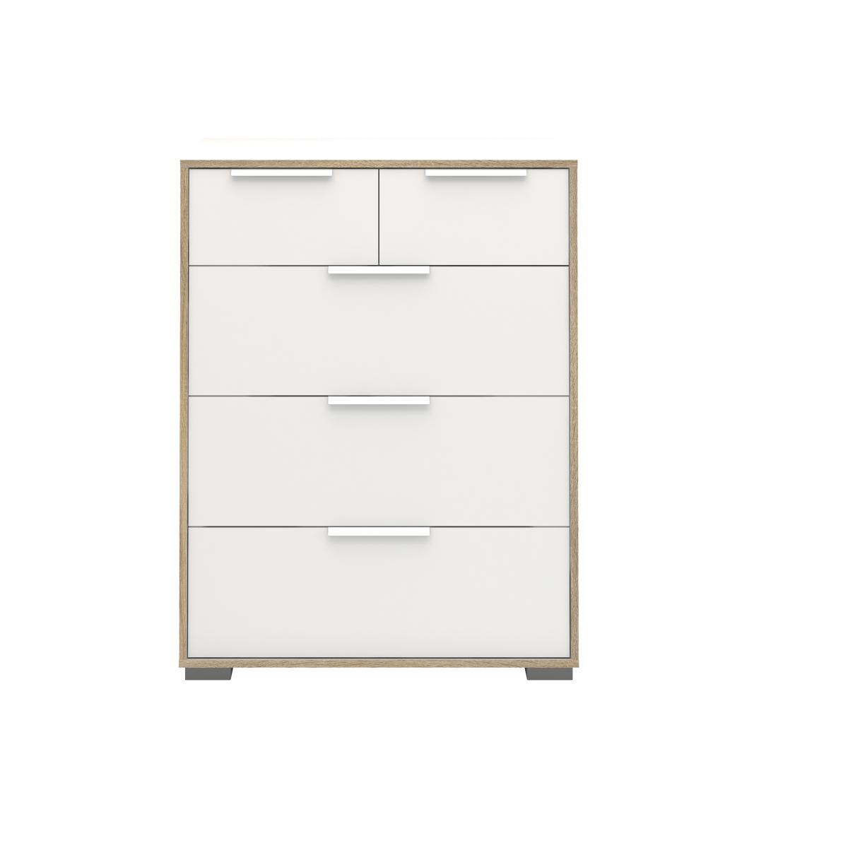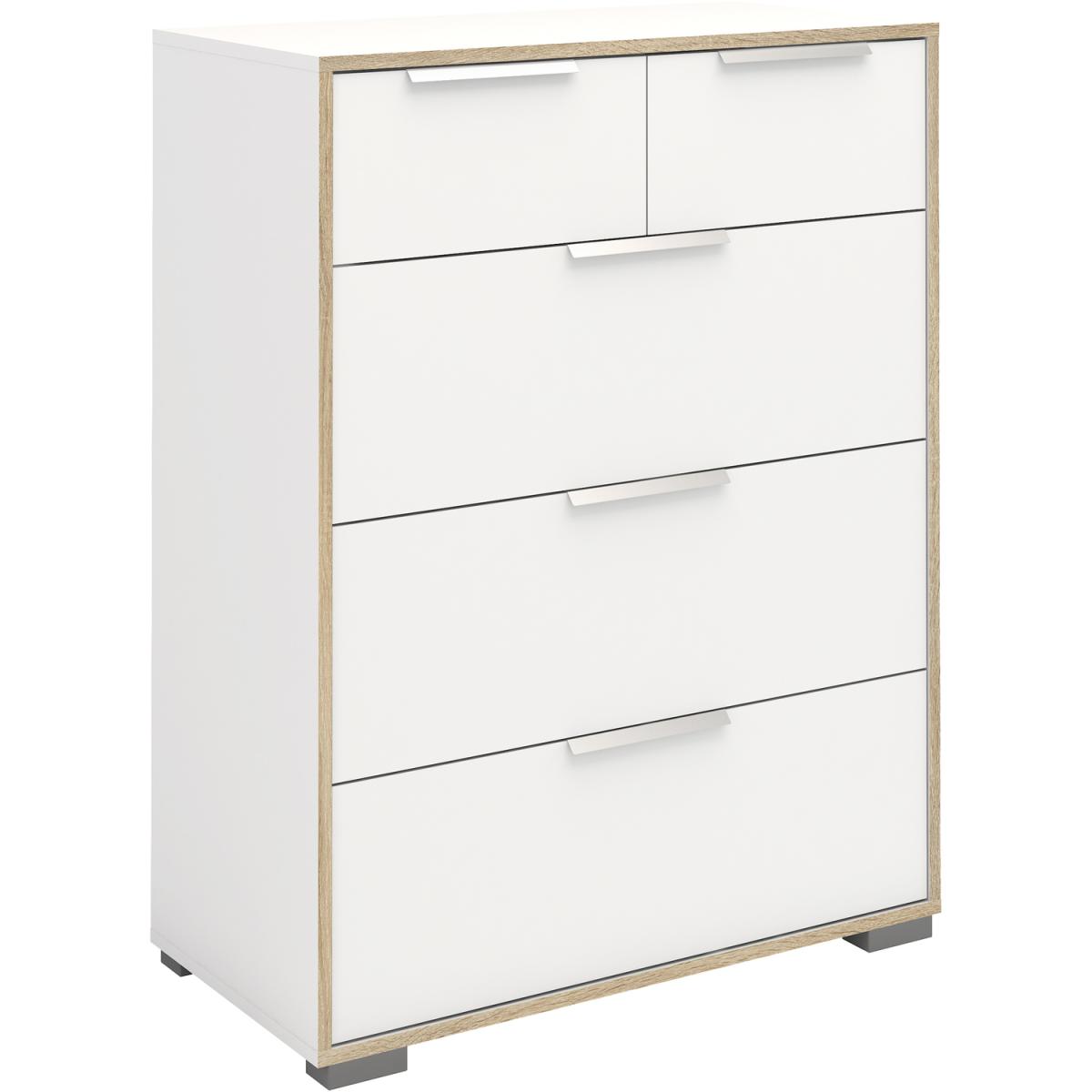 I love this chest of five drawers for its clean, contemporary look that balances white and oak beautifully. It works particularly well in modern or Scandi-inspired interiors, where the natural wood tone adds warmth without overpowering. Practical styling tips include pairing it with minimal accessories to keep the space feeling fresh, or adding a few decorative items on top, such as framed art or small plants, to give it personality. It’s a versatile piece that can serve as a bedroom storage solution, a changing table, or even an organisational hub in a hallway or living room. Its neutral palette allows it to slot seamlessly into various colour schemes and design themes, making it a smart, stylish choice.