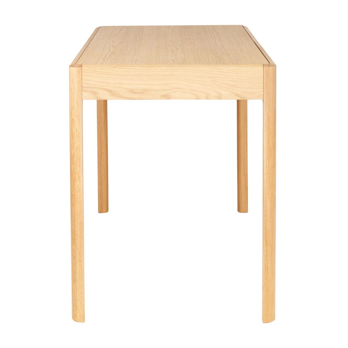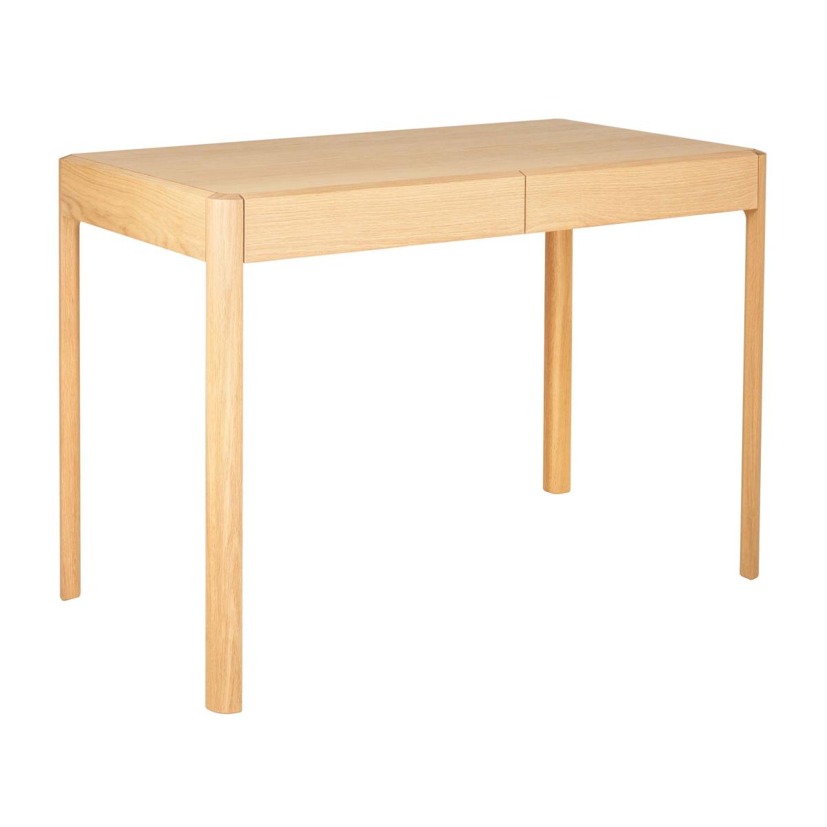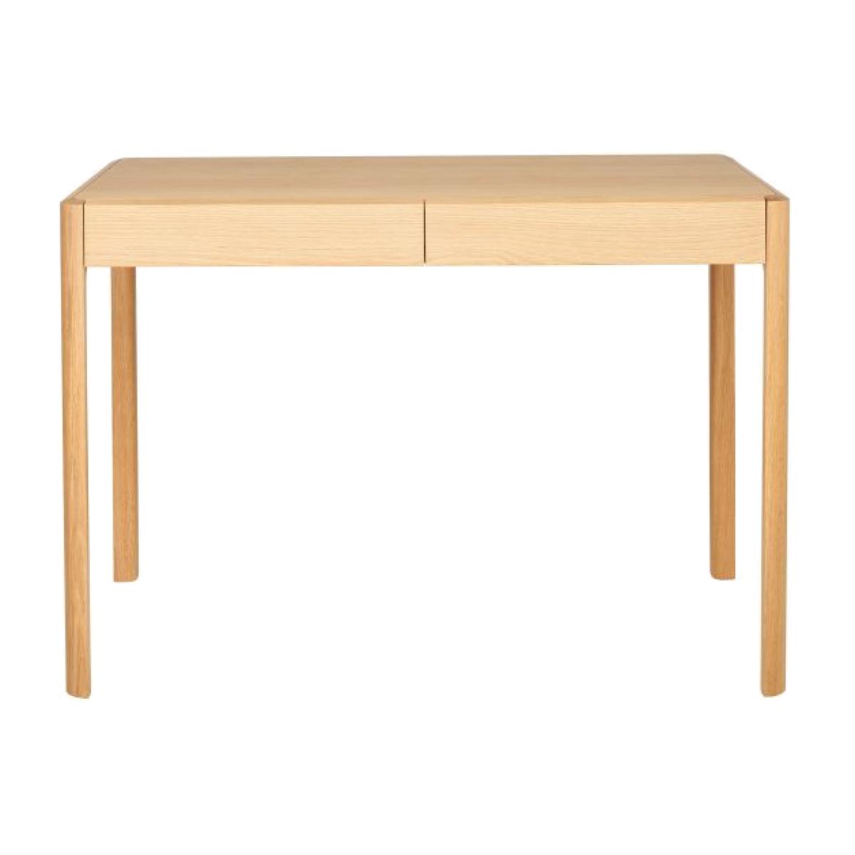 The Mia desk has smooth clean lines, elegant chamfered legs create attractive detailing. This desk has two compact drawers that give handy storage for a lap top, stationary and papers. Finished in a dead matt lacquer, providing protection, whilst displaying the natural beauty of the oak grain.