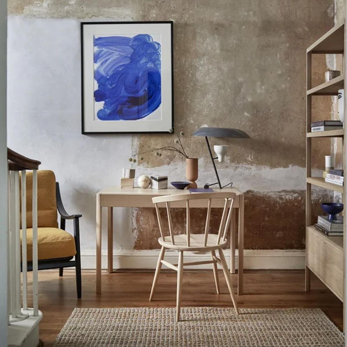 I love this little desk for its clean, minimalist design and versatile appeal. It works particularly well in contemporary, Scandi, or Scandinavian-inspired interiors thanks to its light wood finish and simple lines. In a home office or a bedroom corner, it offers a practical workspace without overwhelming the space. For styling, consider adding a sleek desk lamp, a small vase with fresh flowers, or a stack of curated books to bring personality. Its size makes it ideal for cosy niches, but remember to keep accessories minimal to maintain its crisp, uncluttered look. This desk is a great canvas that blends seamlessly into various schemes, whether you want to create a functional workspace or a stylish dressing table area.