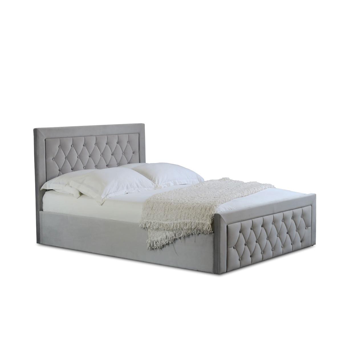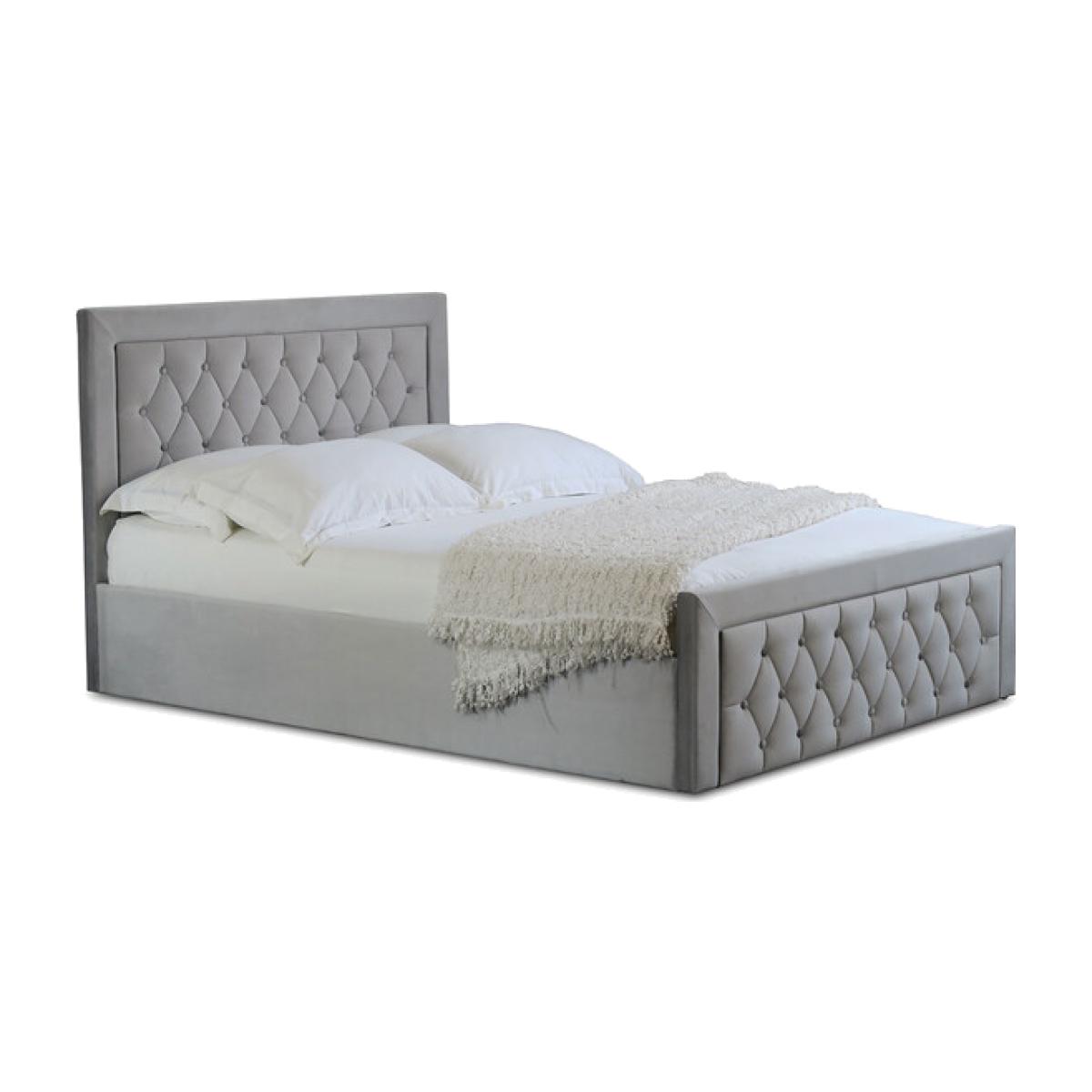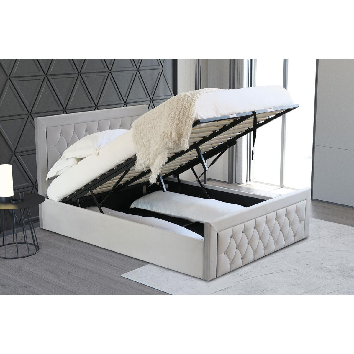 The Mia Ottoman Bed offers a sleek and stylish design that will bring a sense of grace to your bedroom. Featuring a grey brished velvet covering across the lower base and headboard, it will effortlessly fit in with your existing home decor. This bed is designed with ottoman storage, ideal for keeping bedsheets or out of season clothes to help you keep your bedroom neat and tidy. This bed is built from sturdy yet affordable materials, allowing you to bring high-class elegance into your home. It will prove to be easy to assemble, leading to a beautiful nights sleep the first time you try it and every night thereafter.